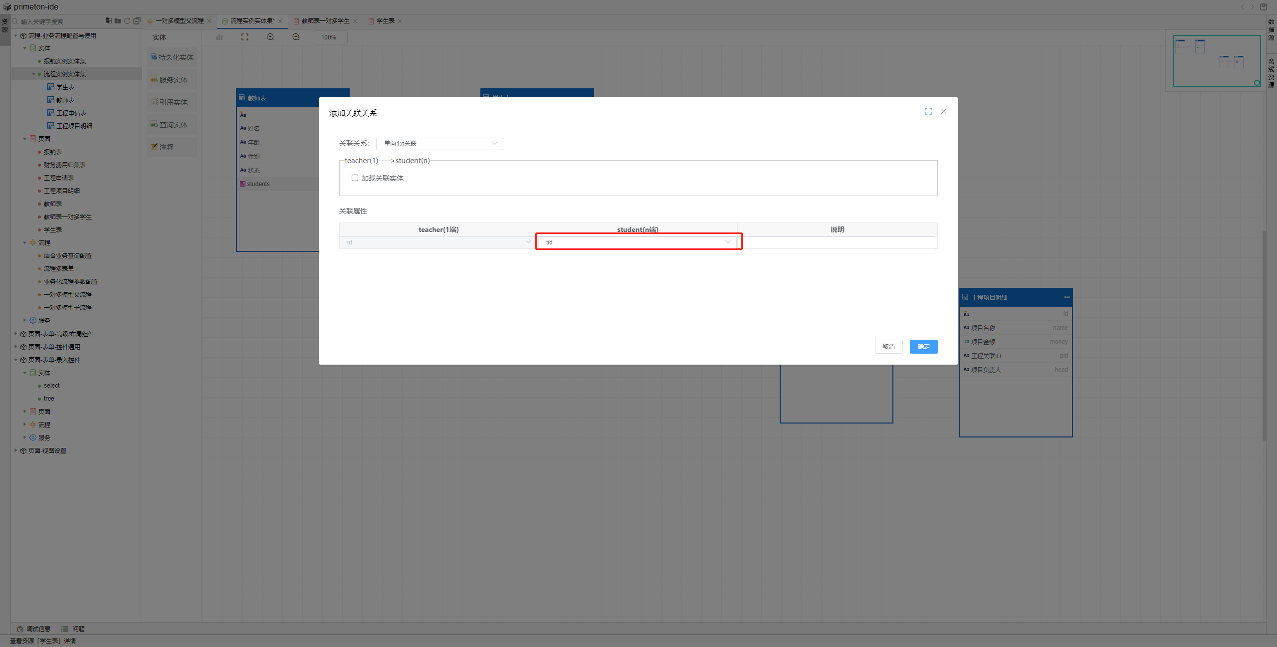 1.创建1:n数据模型,并绑定关联关系。