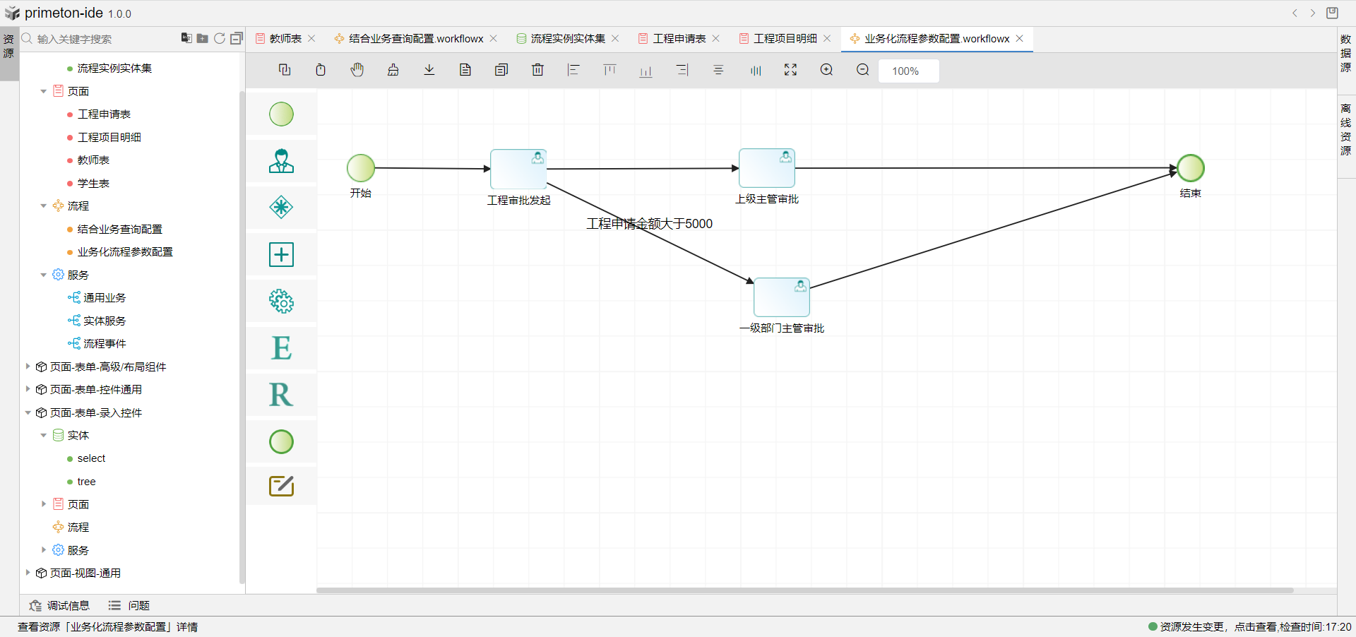 1.创建一个工程审批流程绑定工程申请表单。