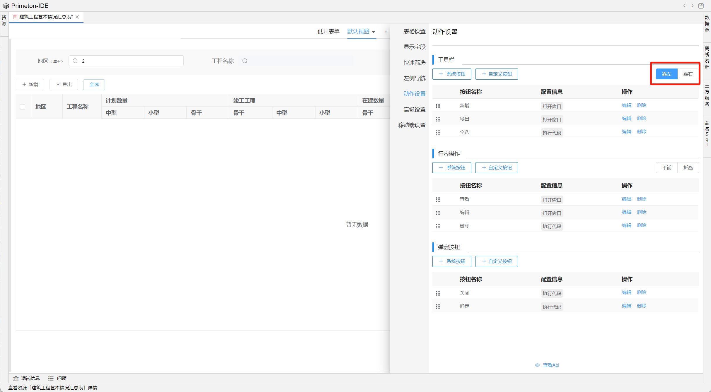 工具栏按钮可配置按钮位置,默认配置为靠左。
