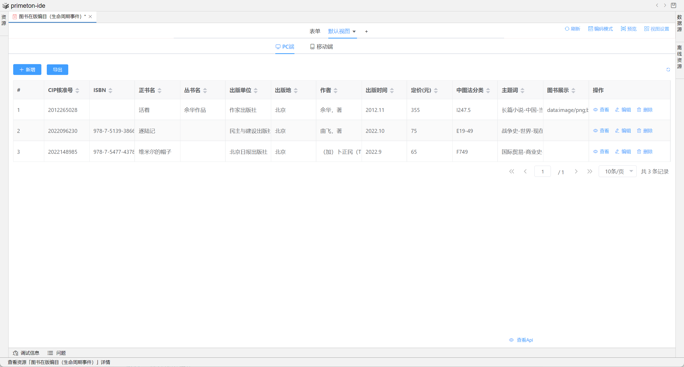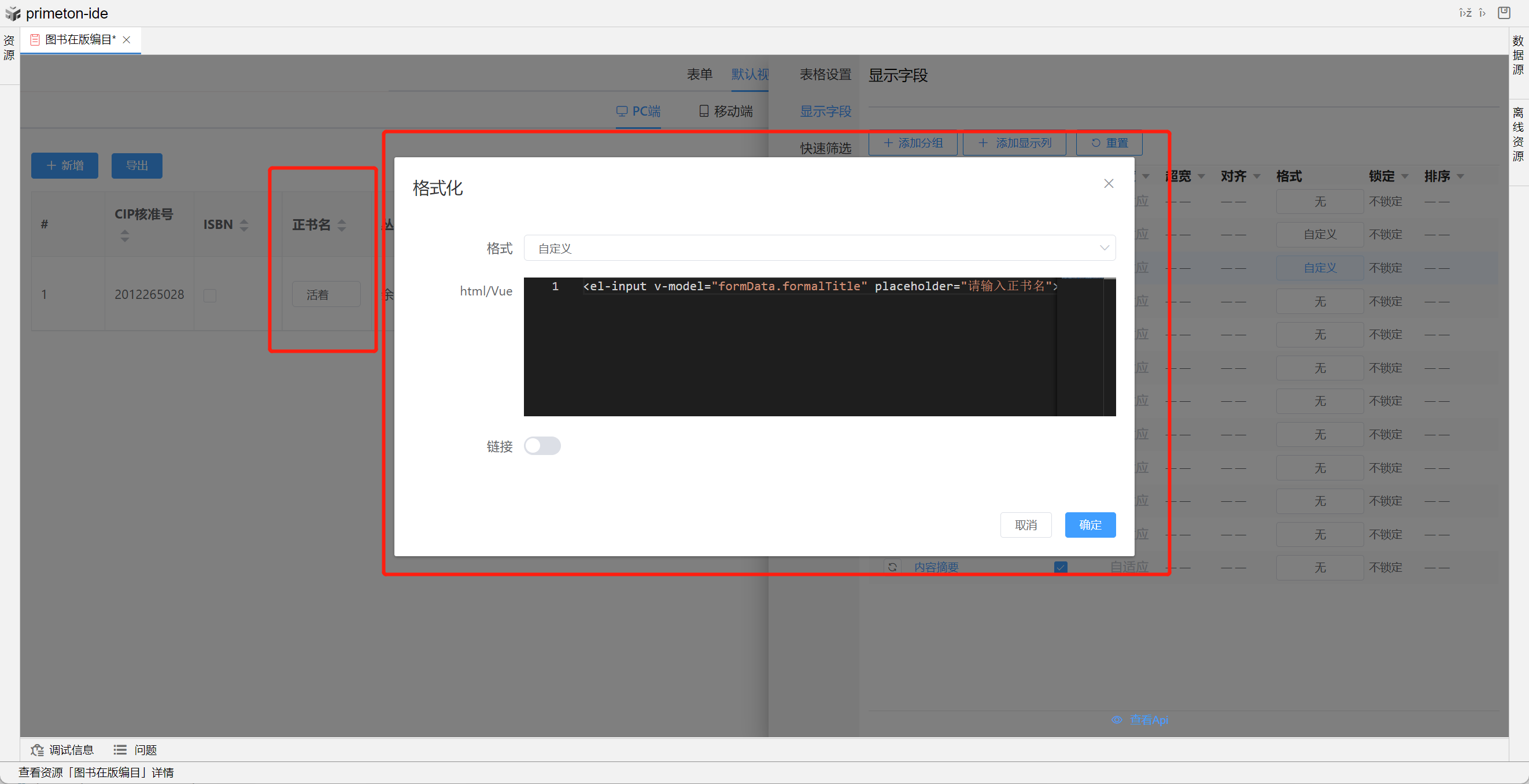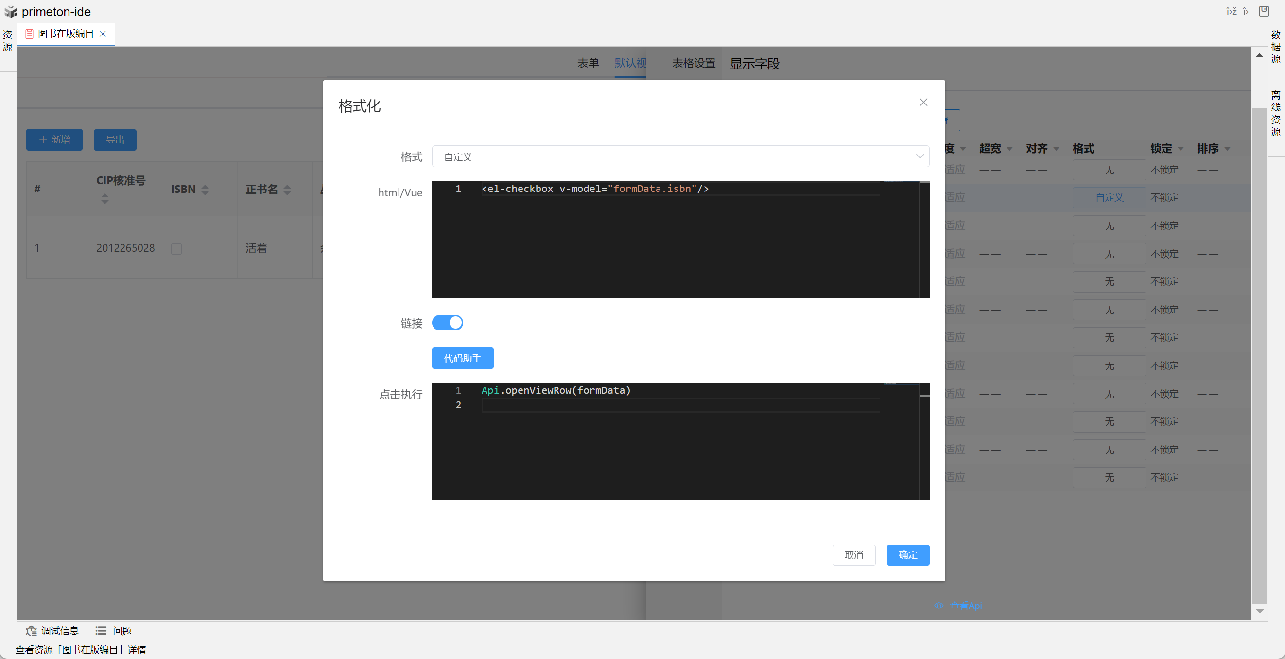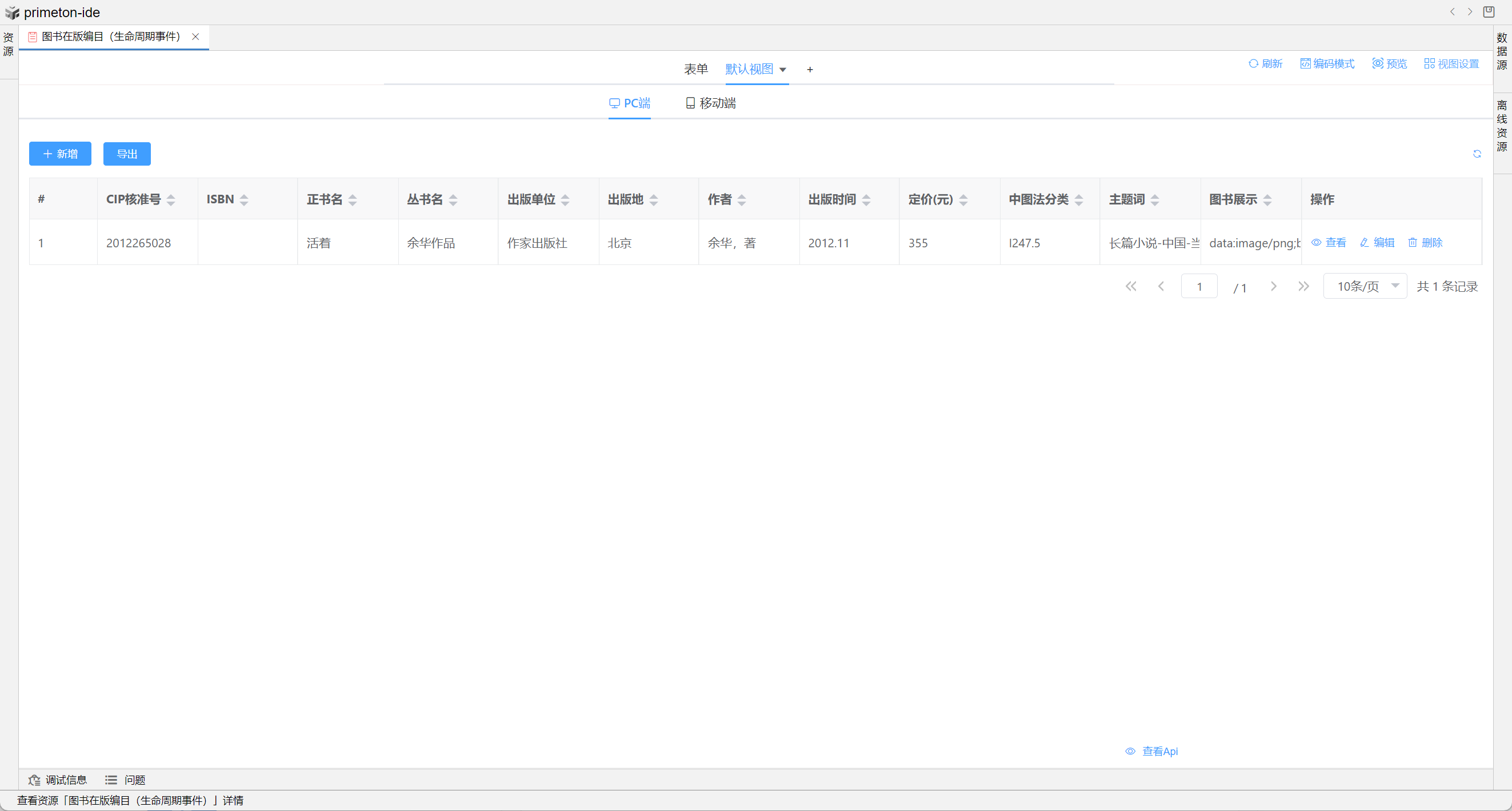 视图展示支持多种数据格式,本部分将以"图书在版编目"为示例进行配置讲解