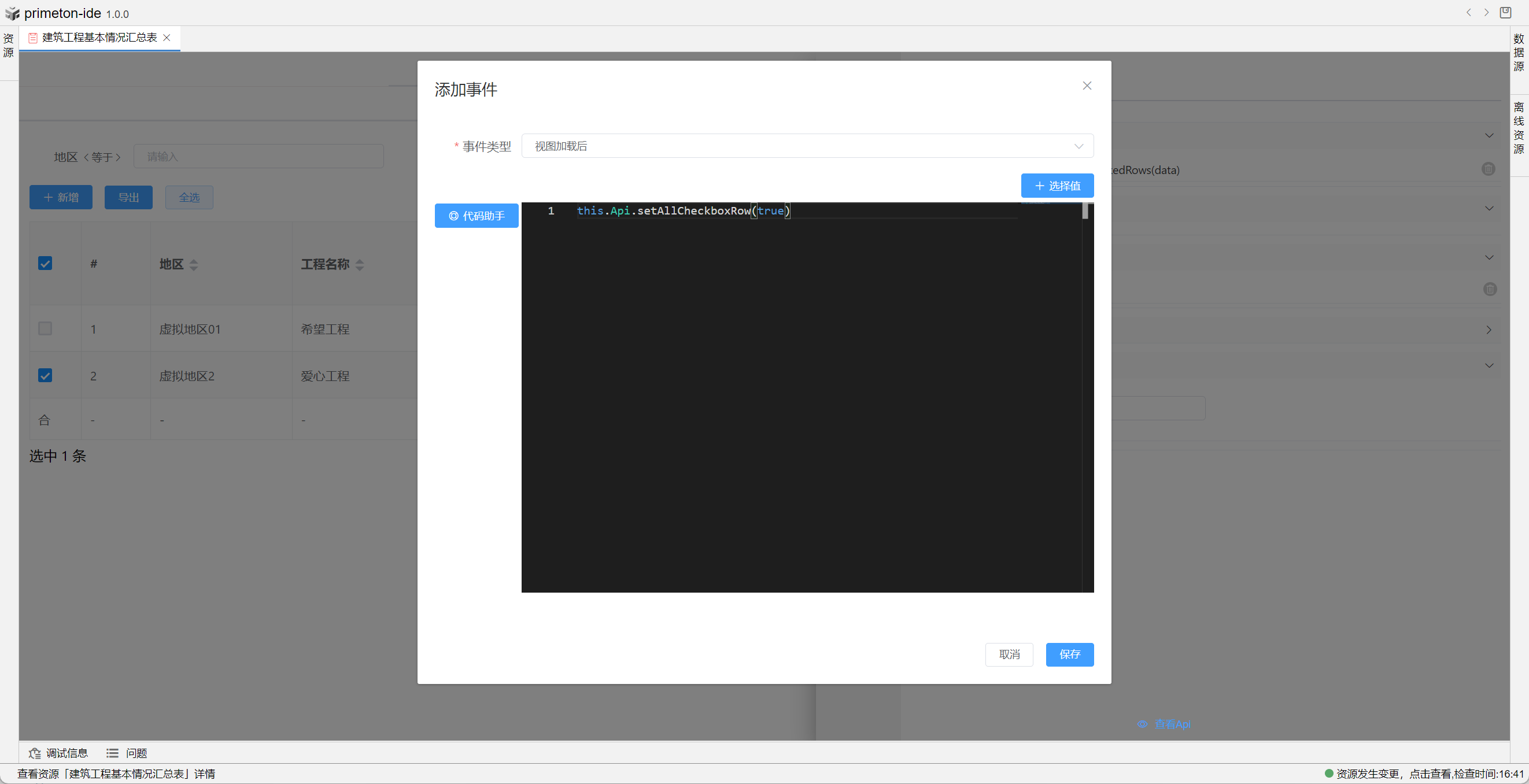 3. 视图全选记录后:设置多选后,全选触发事件