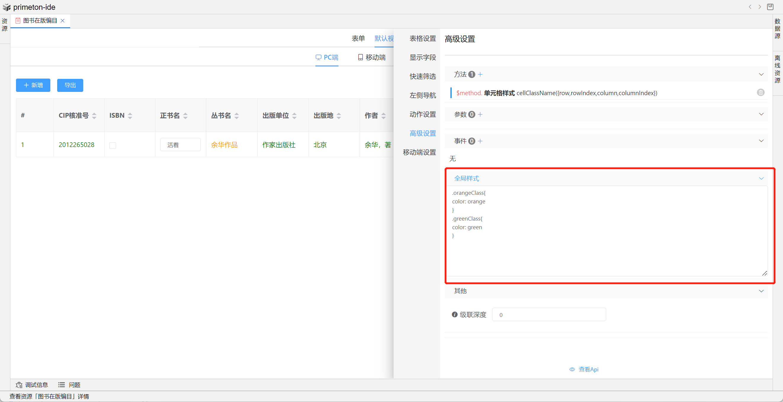 1. 在视图设置-高级设置-全局样式添加样式代码