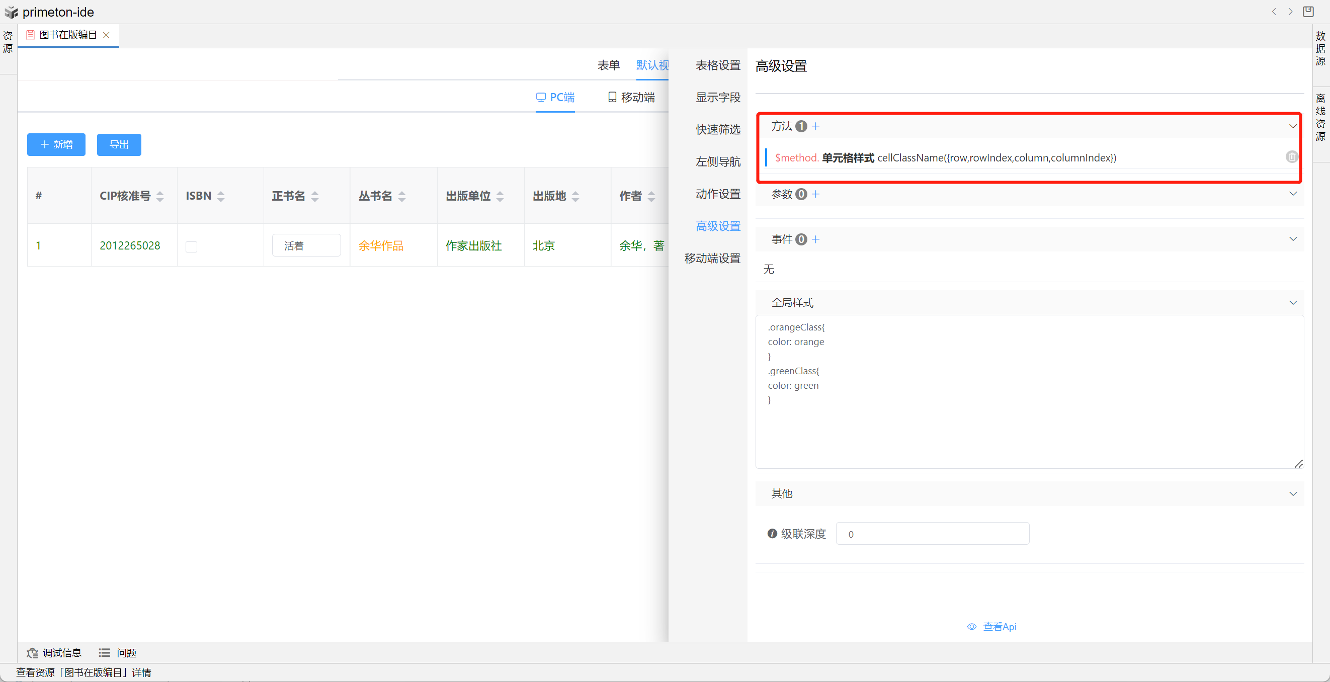 视图中根据不同业务场景可自定义表格样式