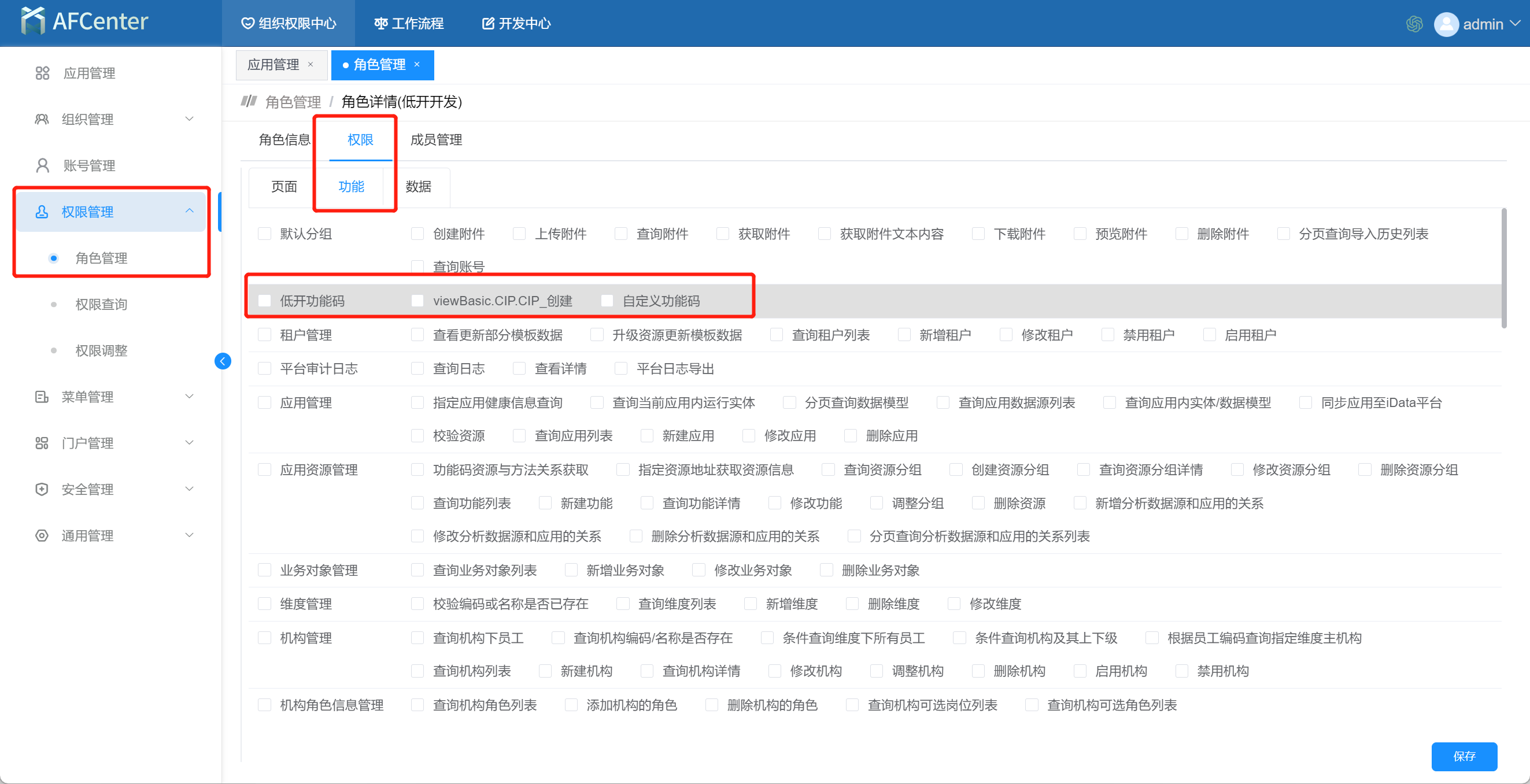 1. 支持设置功能码与角色绑定