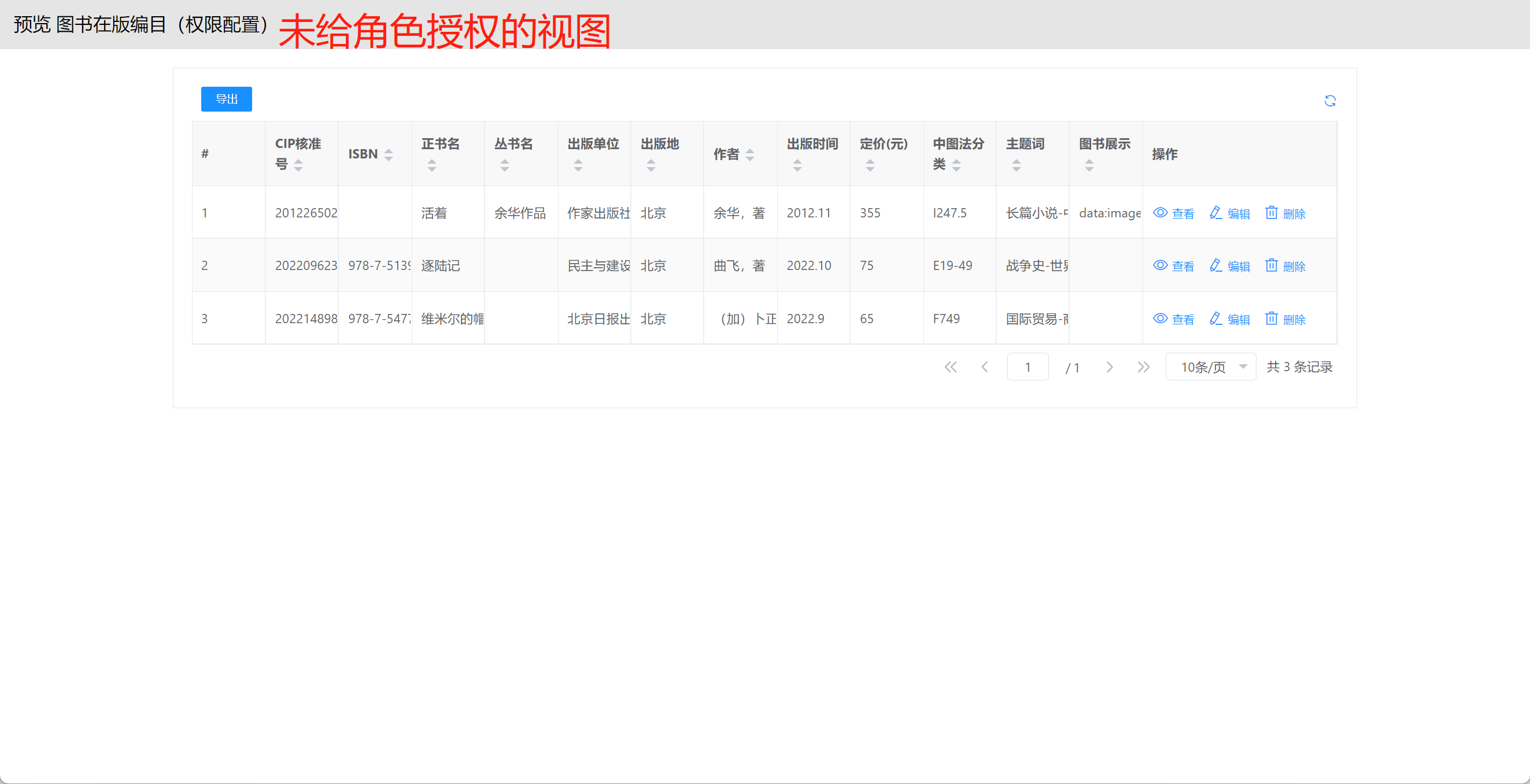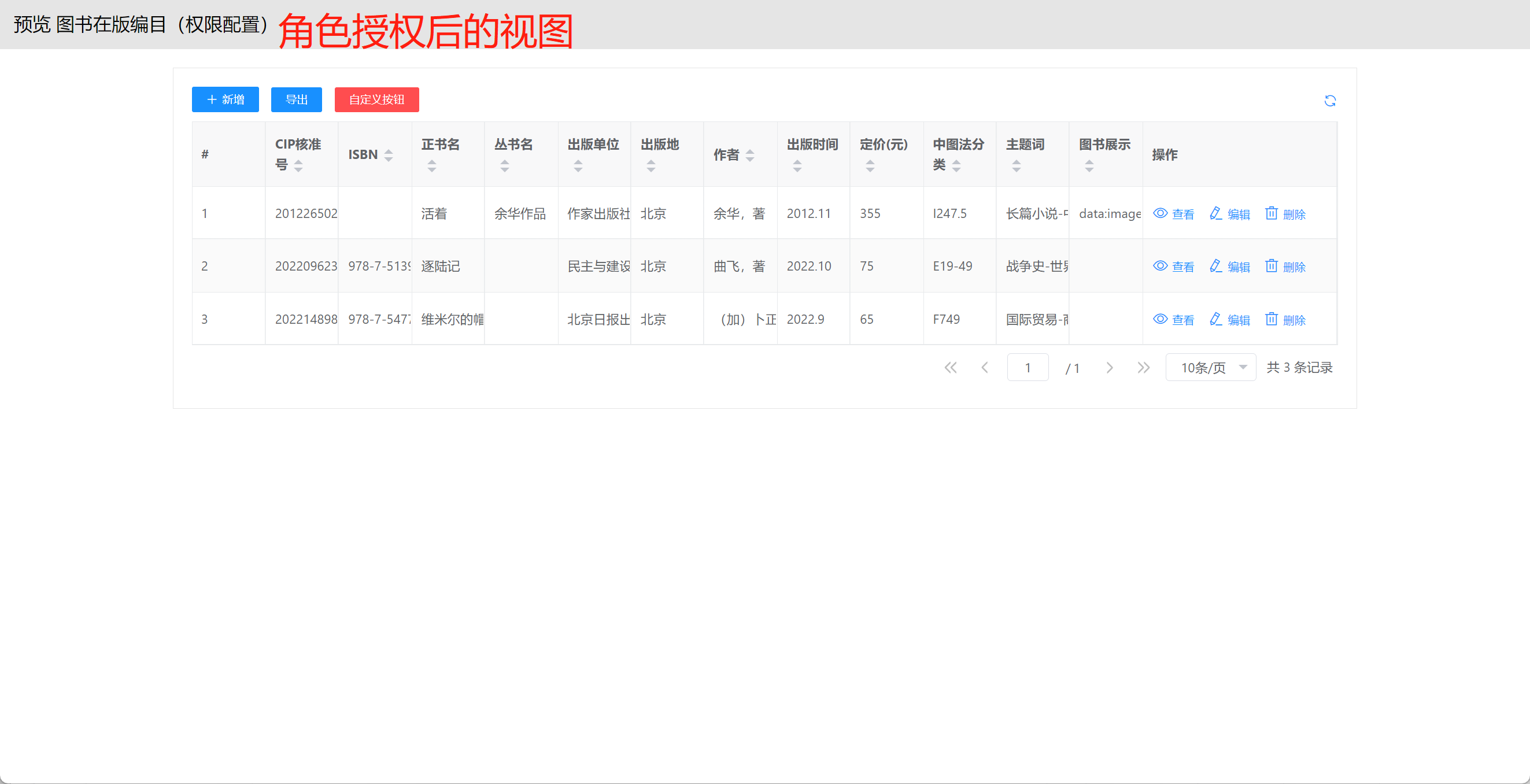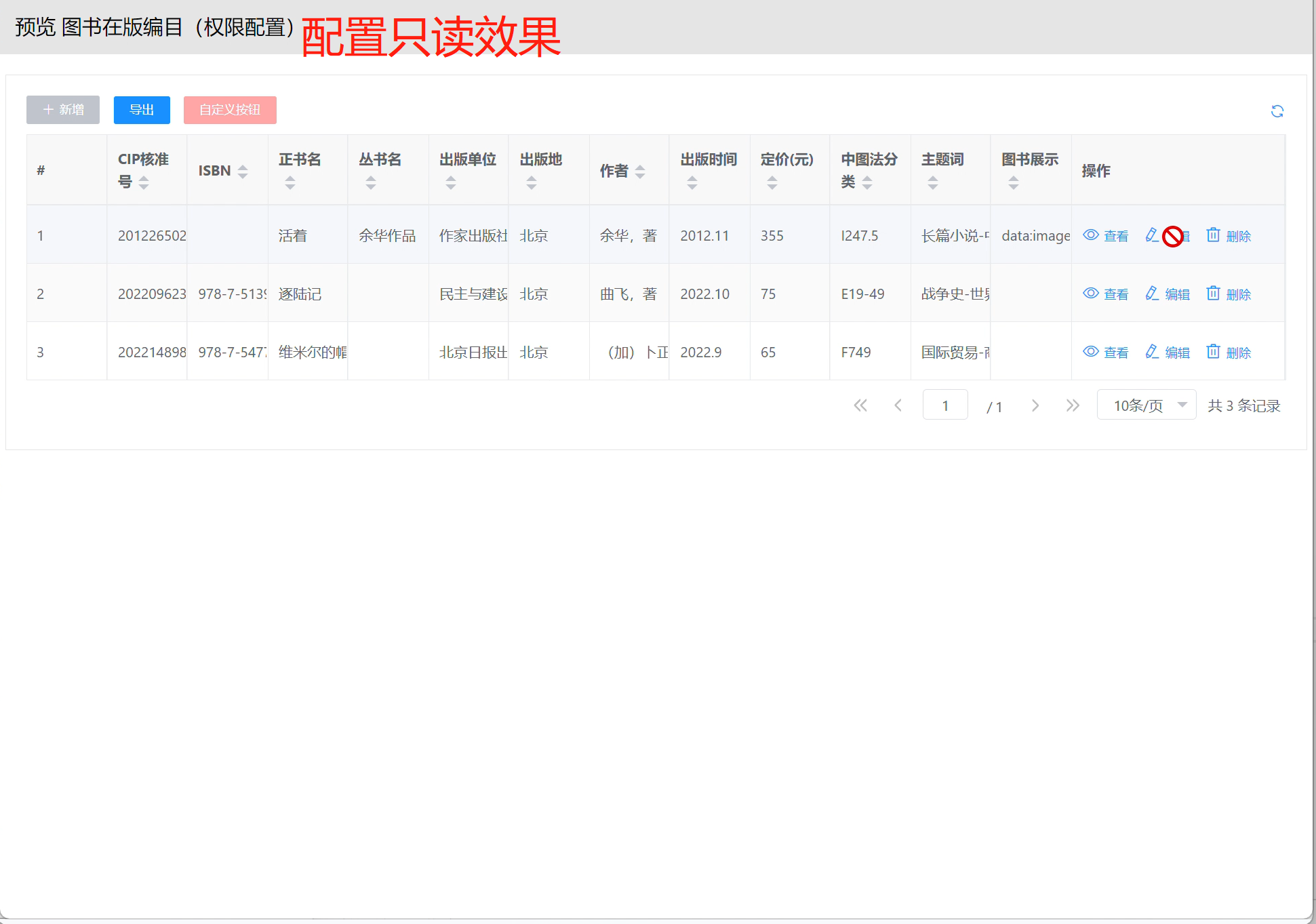 本部分将以"图书在版编目(权限配置)"为示例进行配置讲解