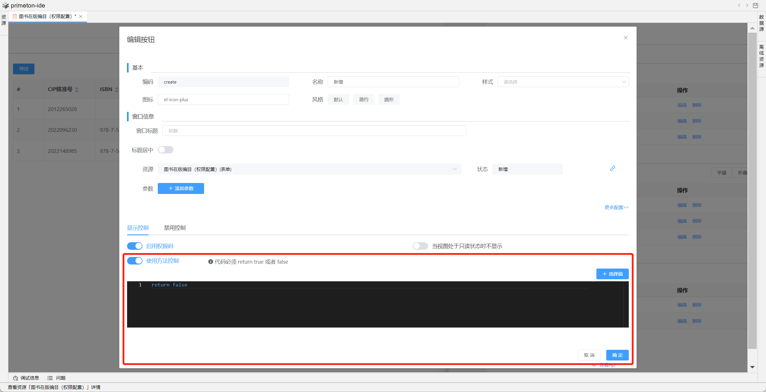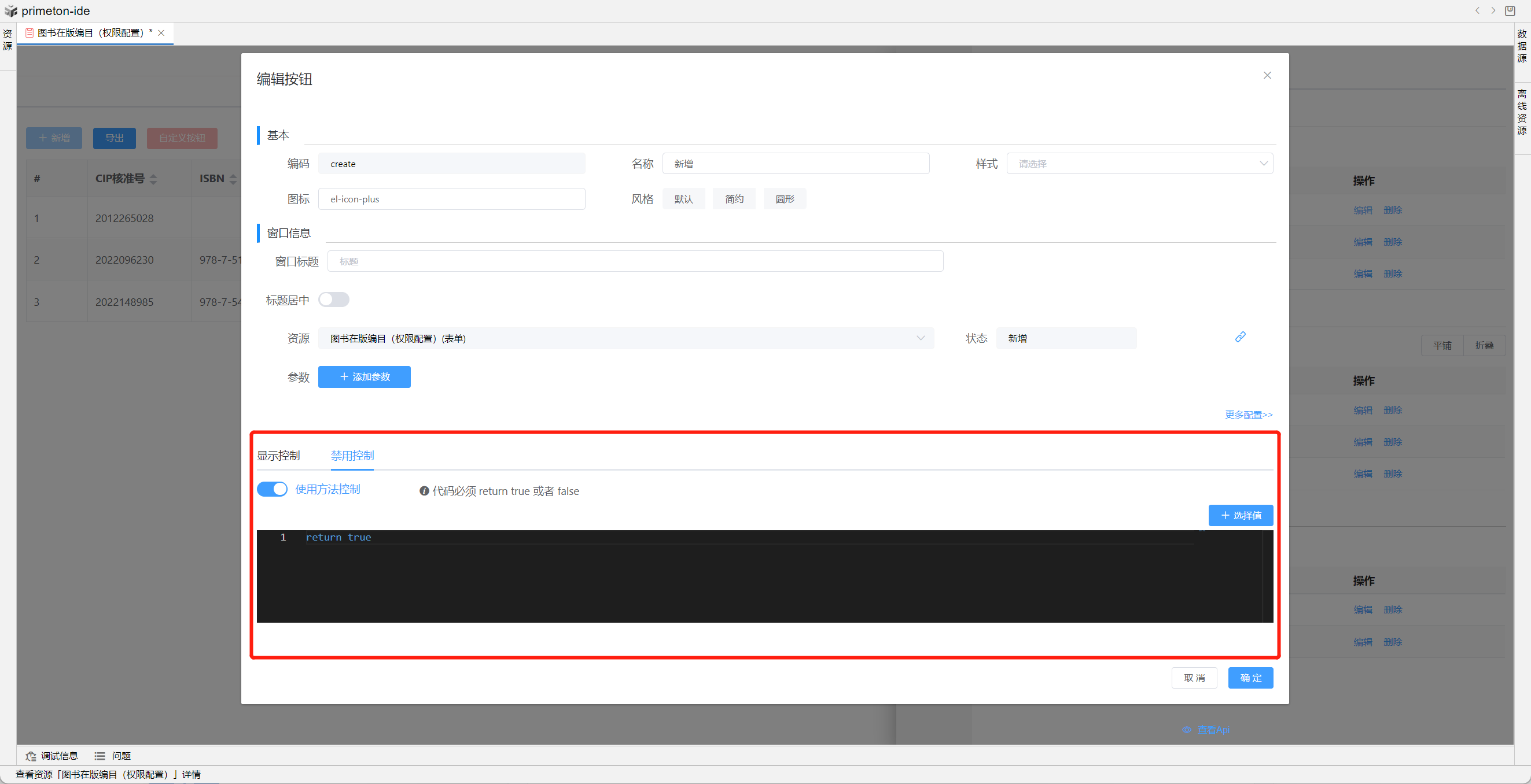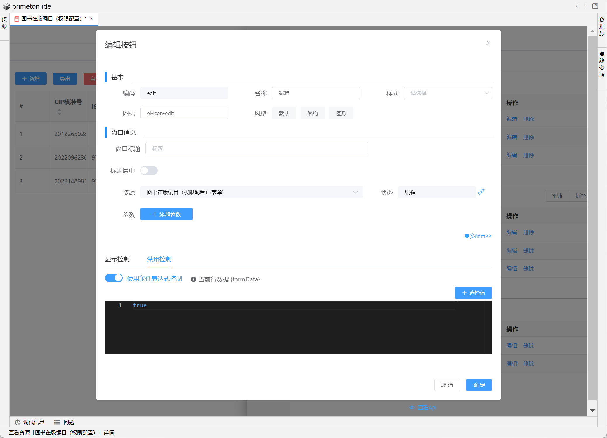 行内操作按钮设置如下