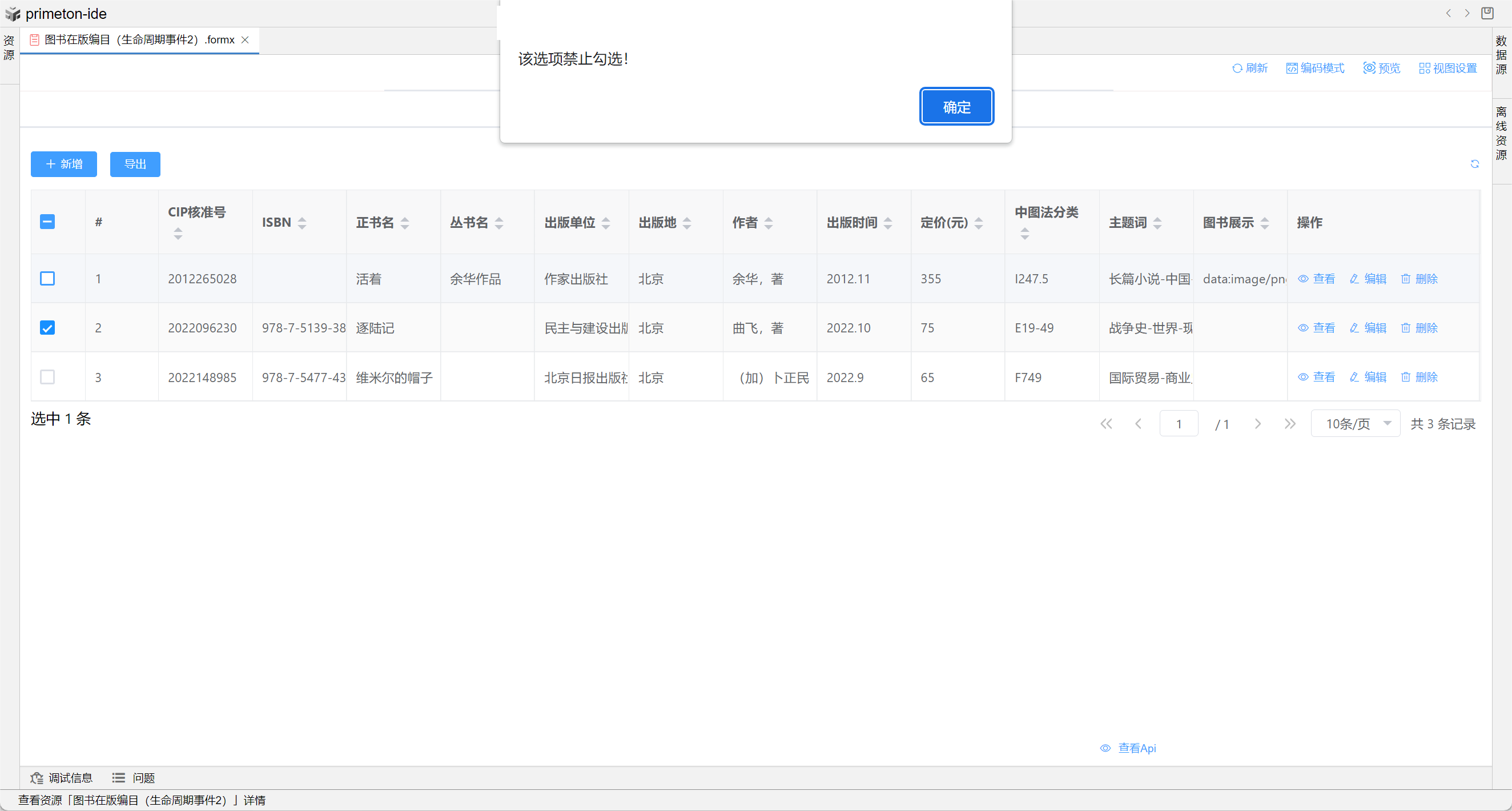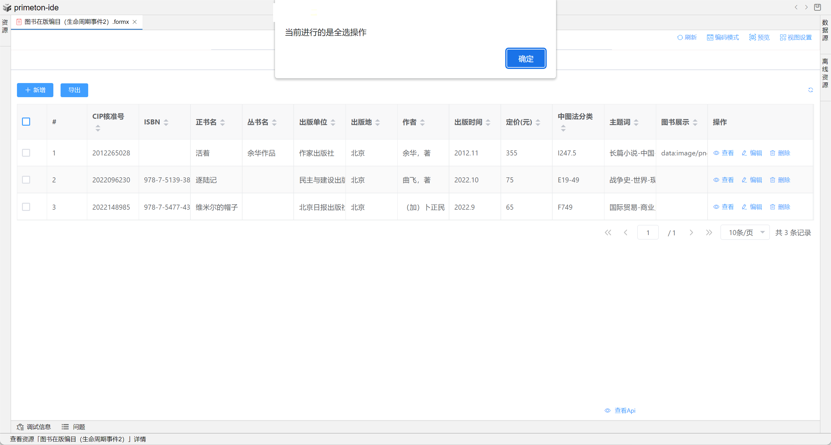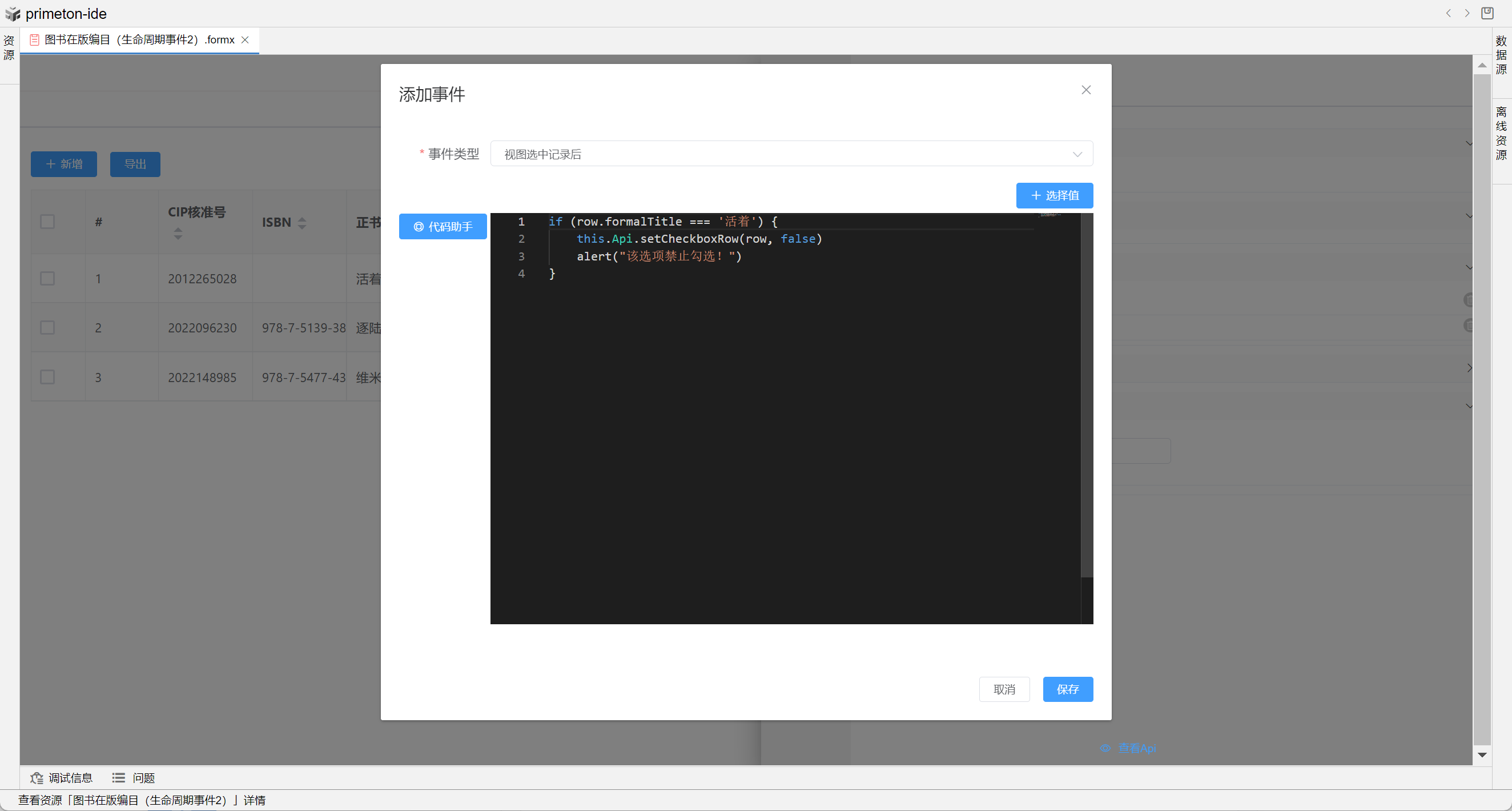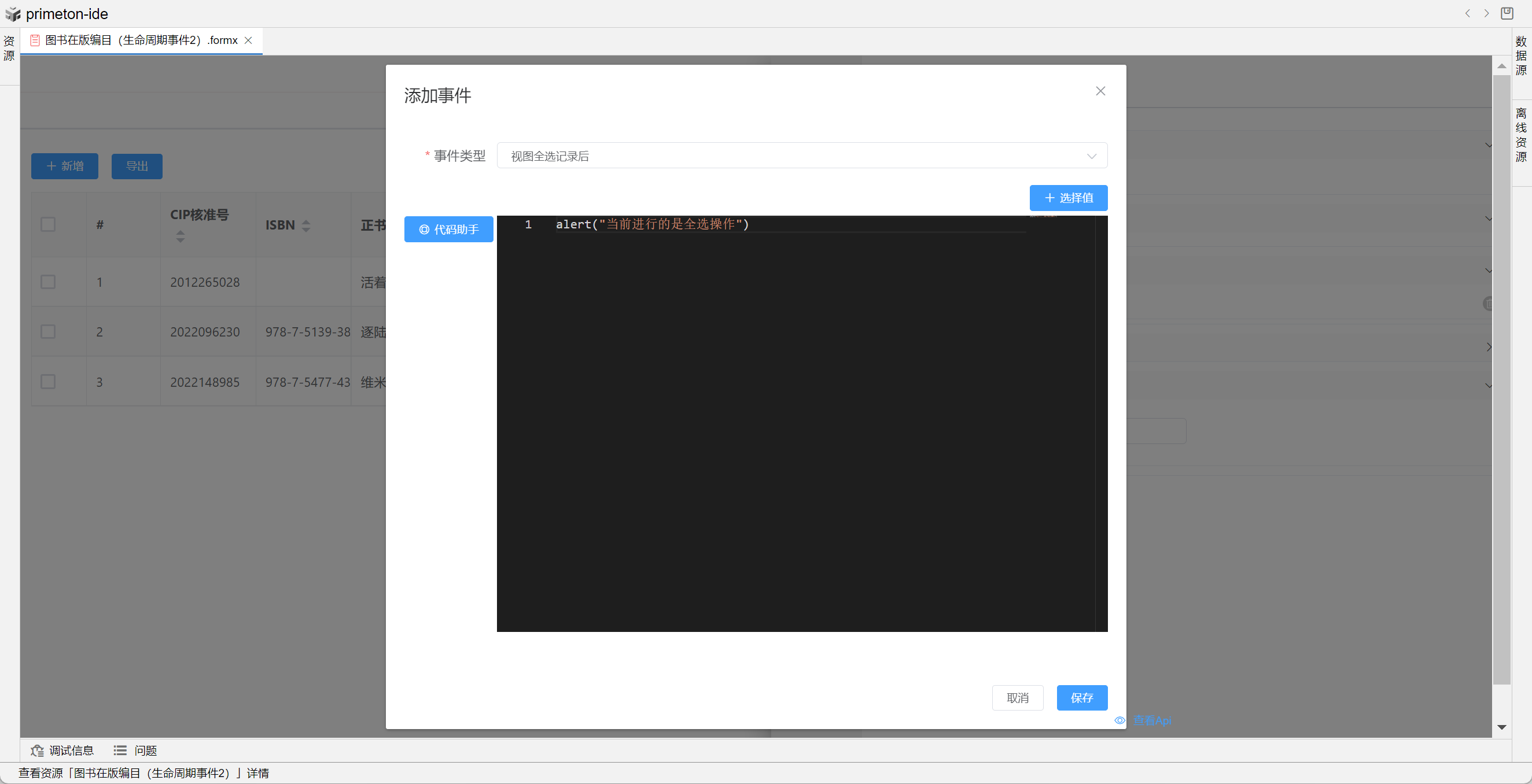 本部分将以"图书在版编目(生命周期事件)"和"图书在版编目(生命周期事件2)"为示例进行配置讲解