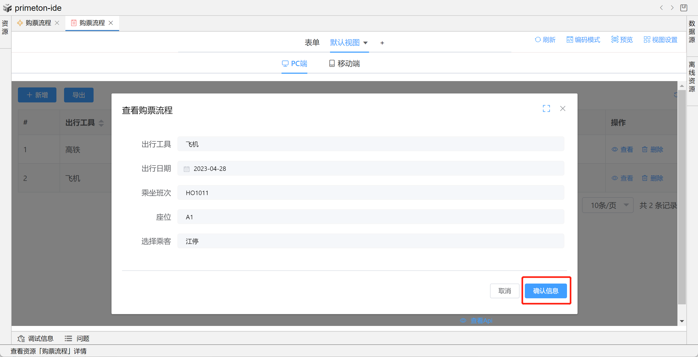 本部分将以"购票流程"为示例进行配置讲解