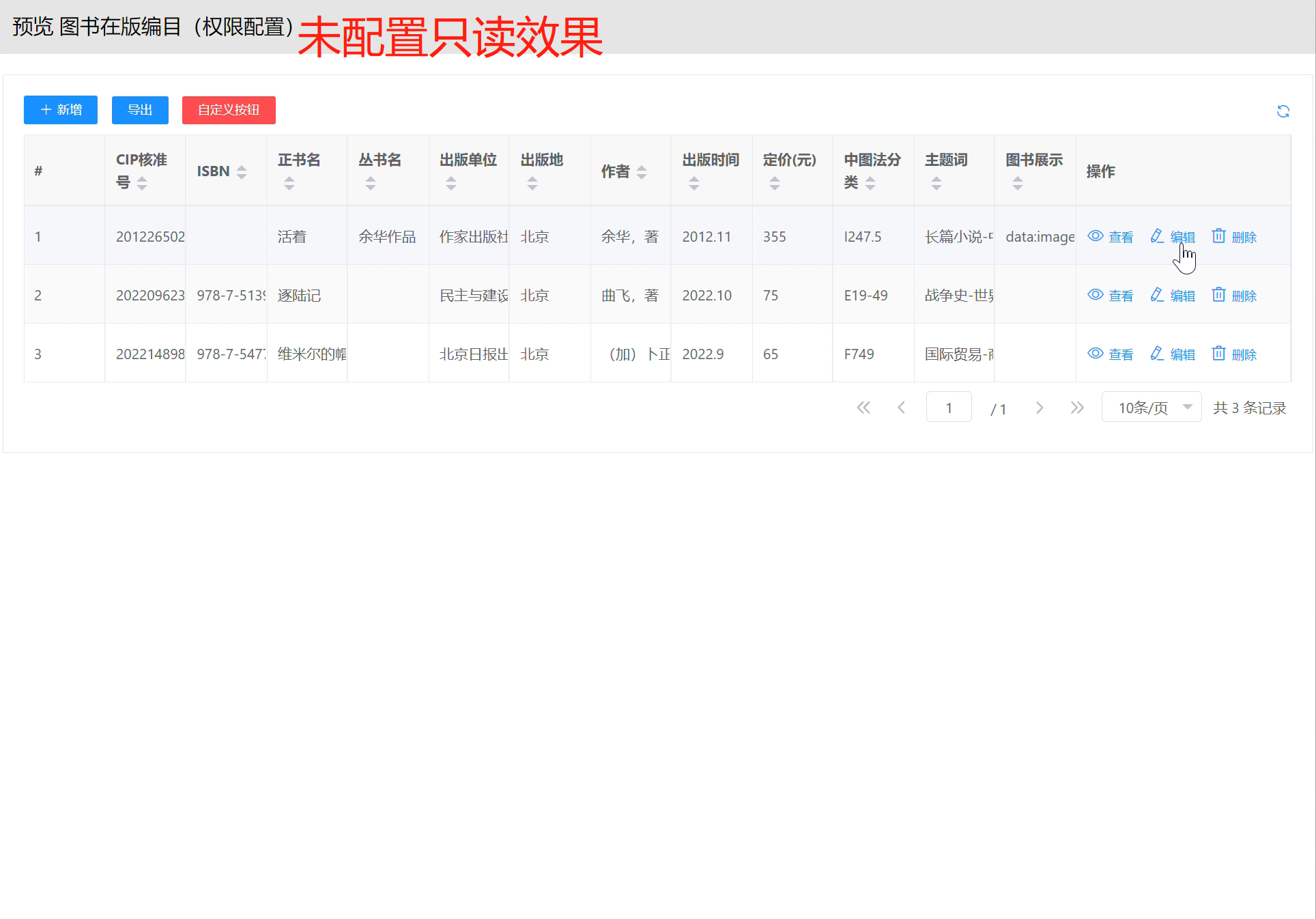 未配置只读效果