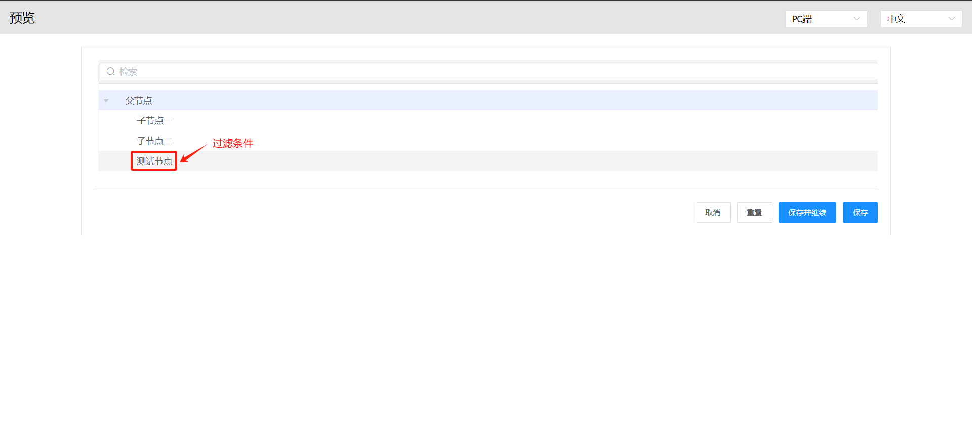 导航树高级-添加事件-查询实体前设置过滤条件,对data解构赋值,然后节点类型是否为子节点,并添加条件。
