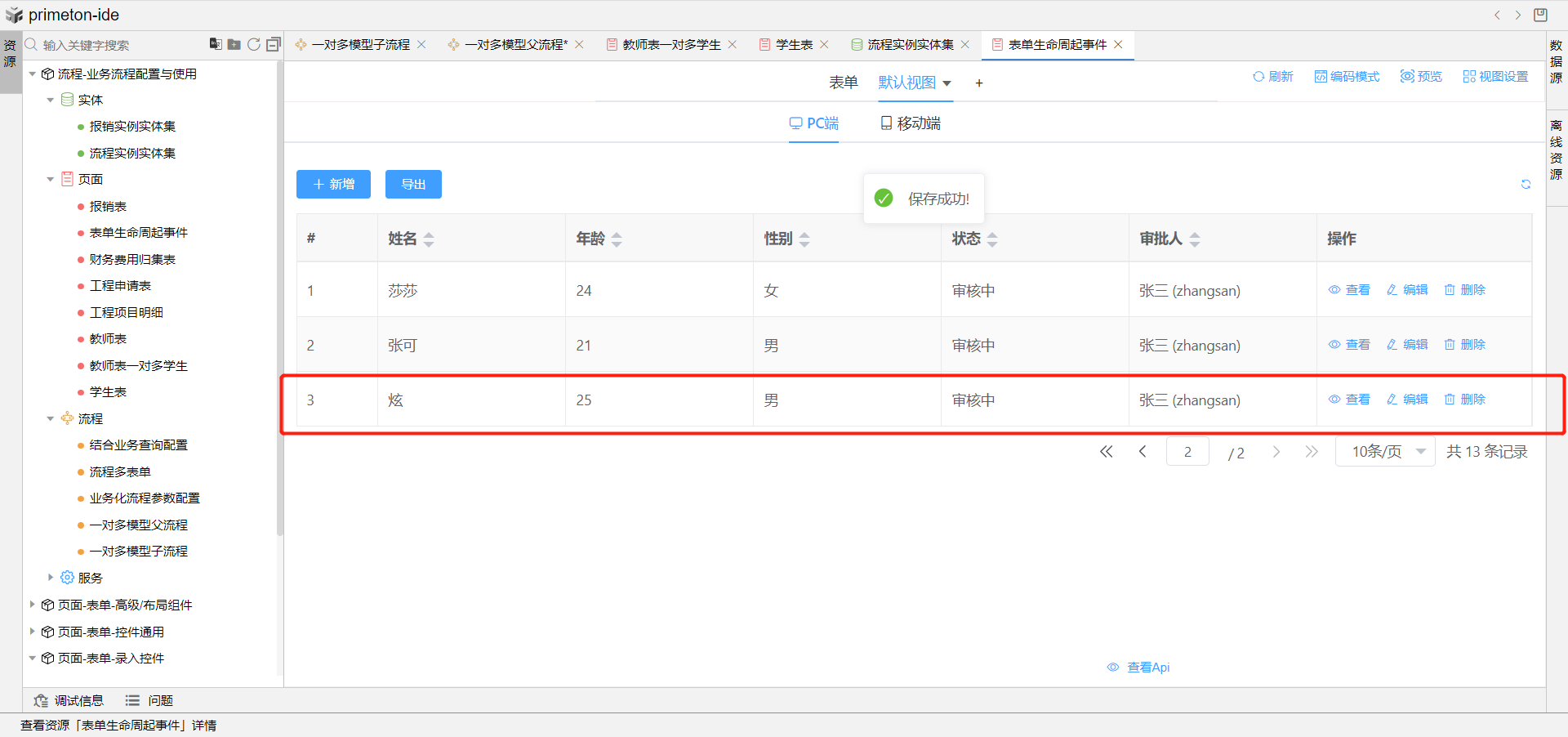 3.新增数据表单弹窗信息填写完后,即可在数据列表中看到状态字段默认都为审核中。