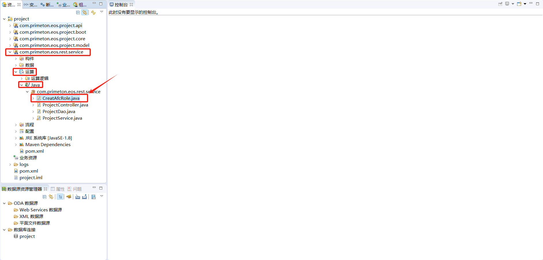 在com.primeton.eos.rest.service构建包-运算-Java-com.primeton.eos.rest.service下创建CreatAfcRole类。
