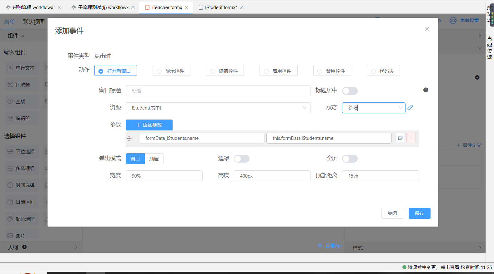 点击新增,弹出一个编辑窗口,点击子表格中已有的行数据,可以行内编辑