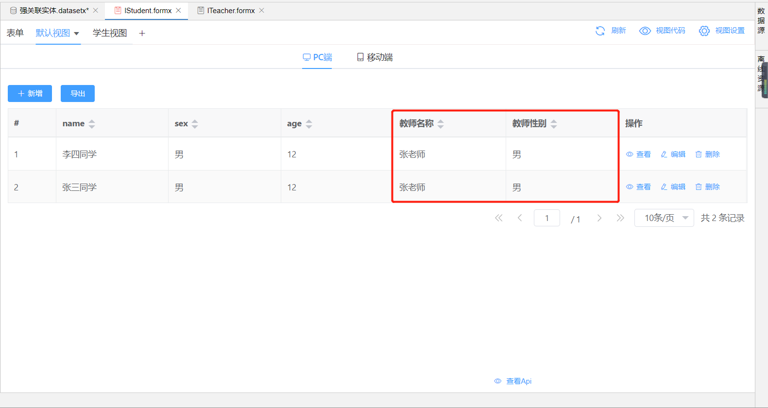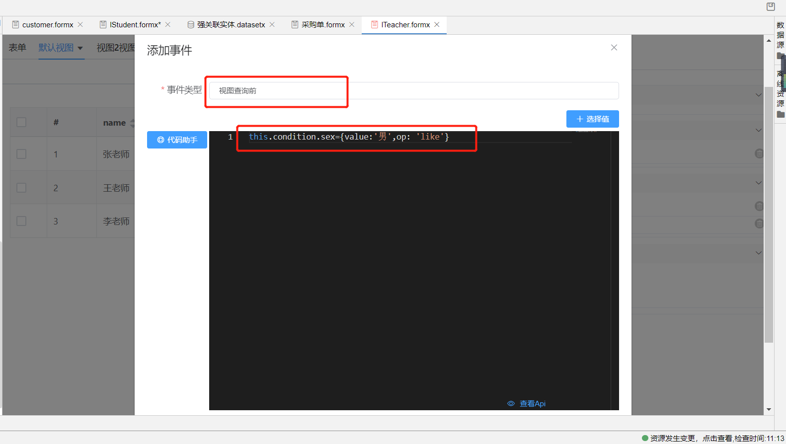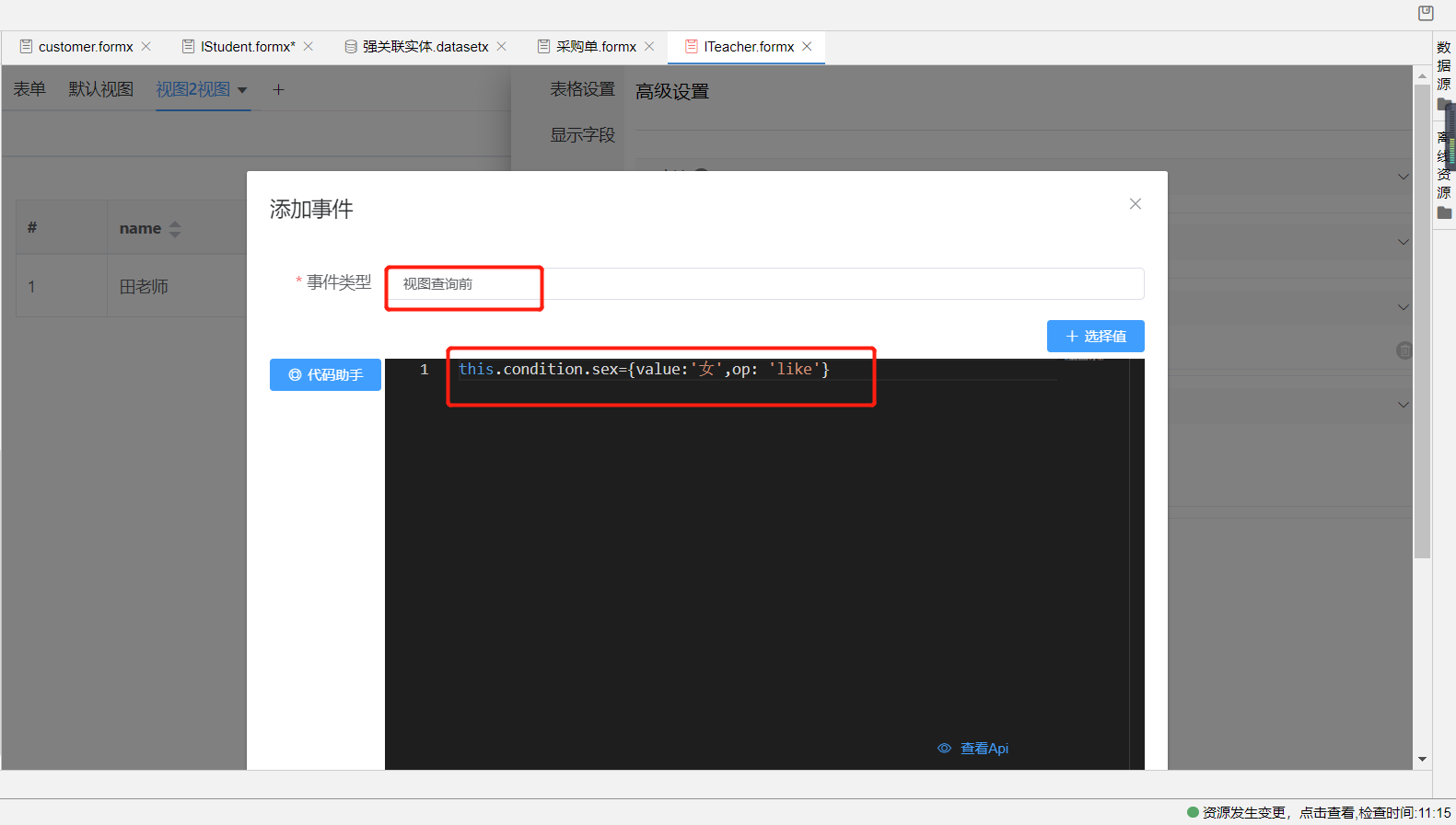步骤6. 建立联系—导航树添加节点被点击事件—修改传参并使用Api操作视图查询