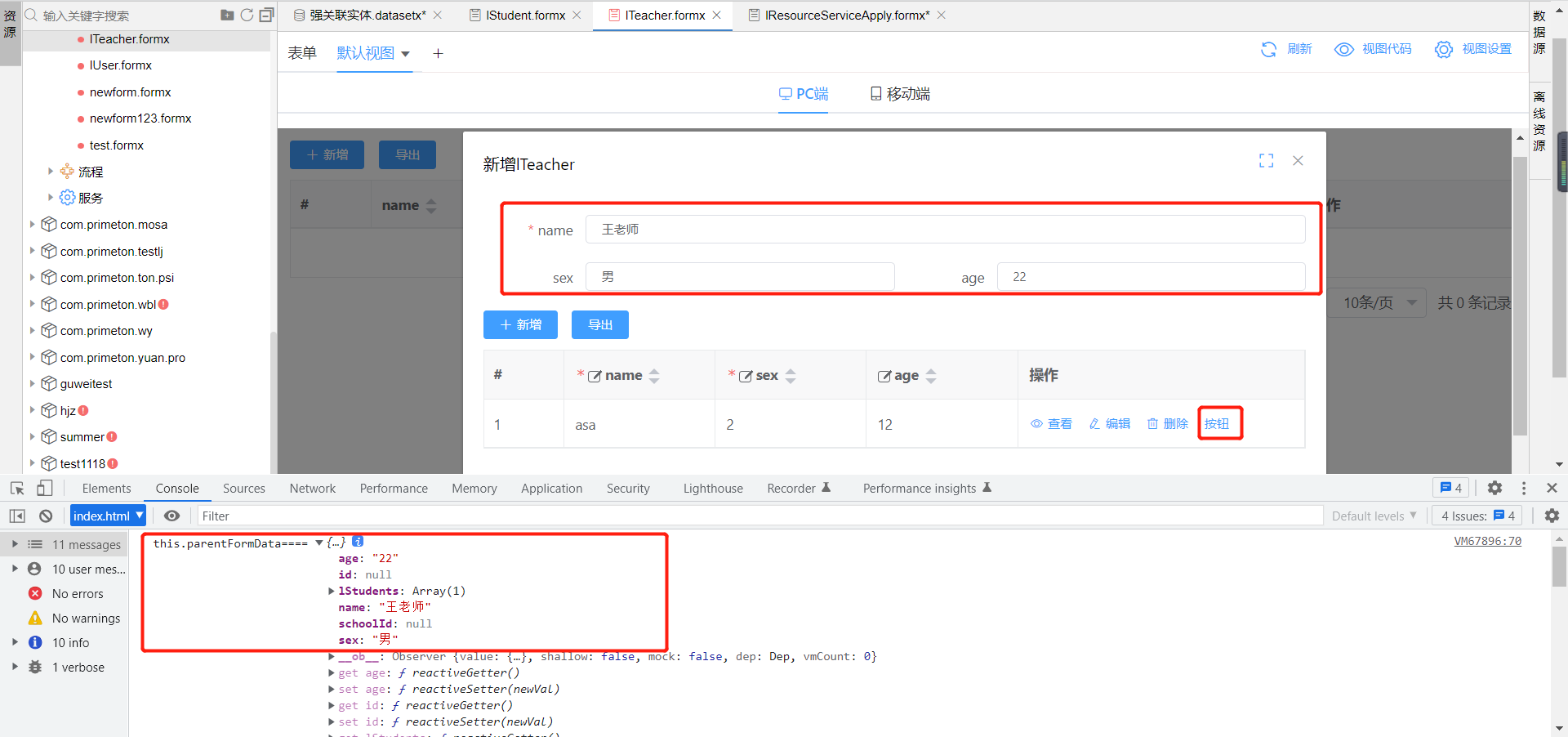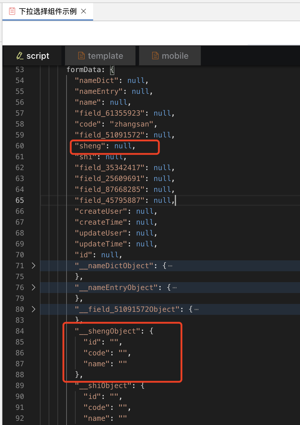 为了方便看子表格中数据格式,可以在编码模式template下写代码,暂时调试页面 ;