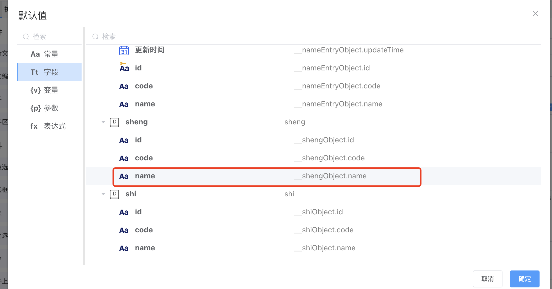 步骤3. 被引用表单配置入参,<节假日>表单的高级设置添加参数v_currentnode_id