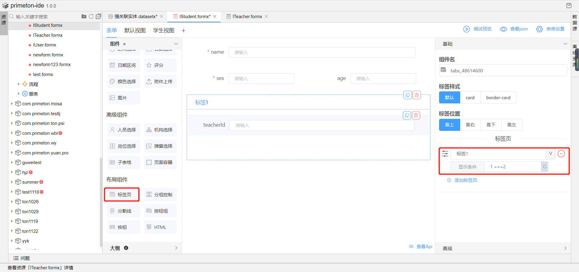 步骤4. 在被引用表单页面,添加并配置导航树视图