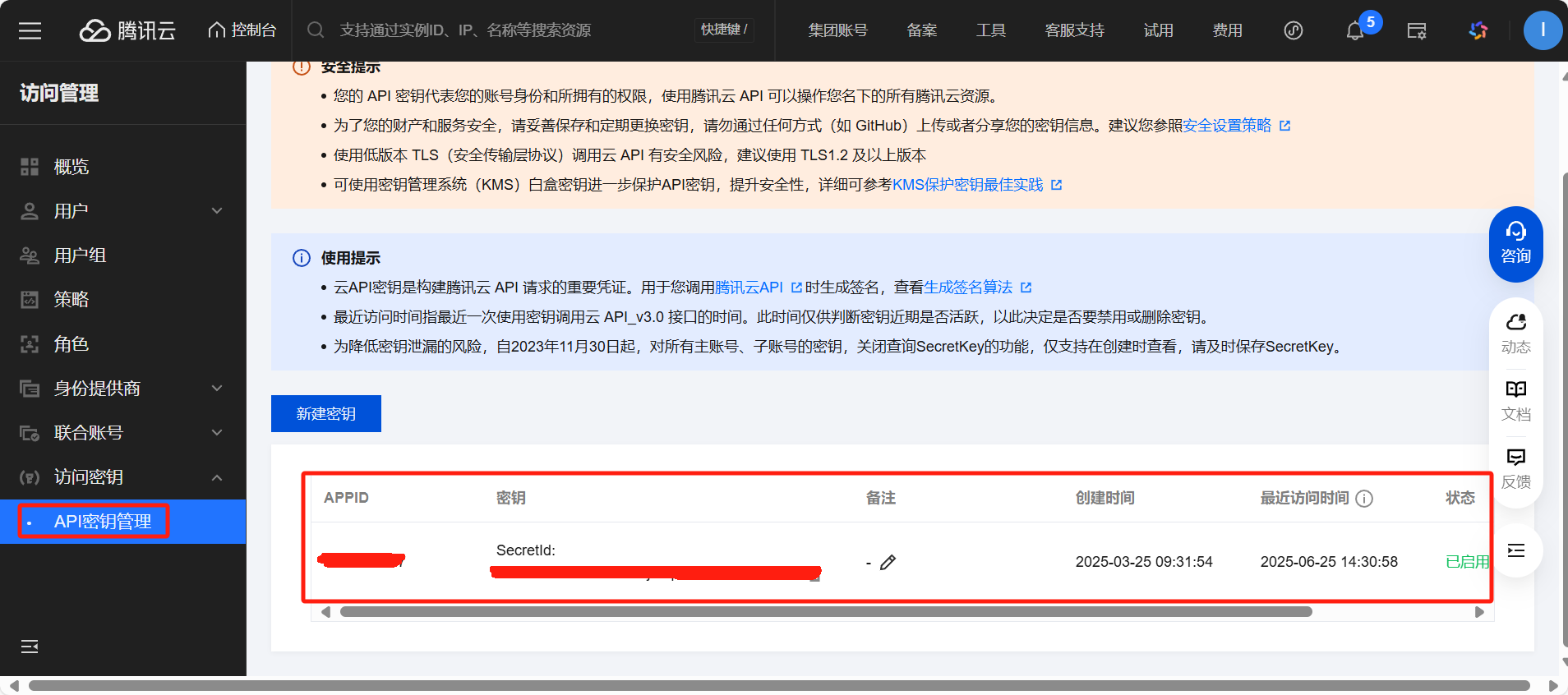 5:腾讯云硬盘的认证参数可在腾讯云硬盘控制管理中心获取,地址:https://console.cloud.tencent.com/cam/capi