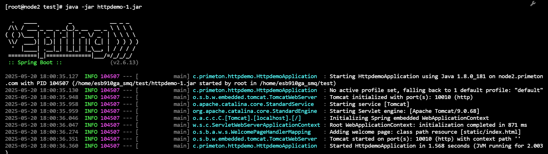 1. 本次我们使用的业务服务为httpdemo-1.jar,打开方式为在命令行下面输入java -jar httpdemo-1.jar。