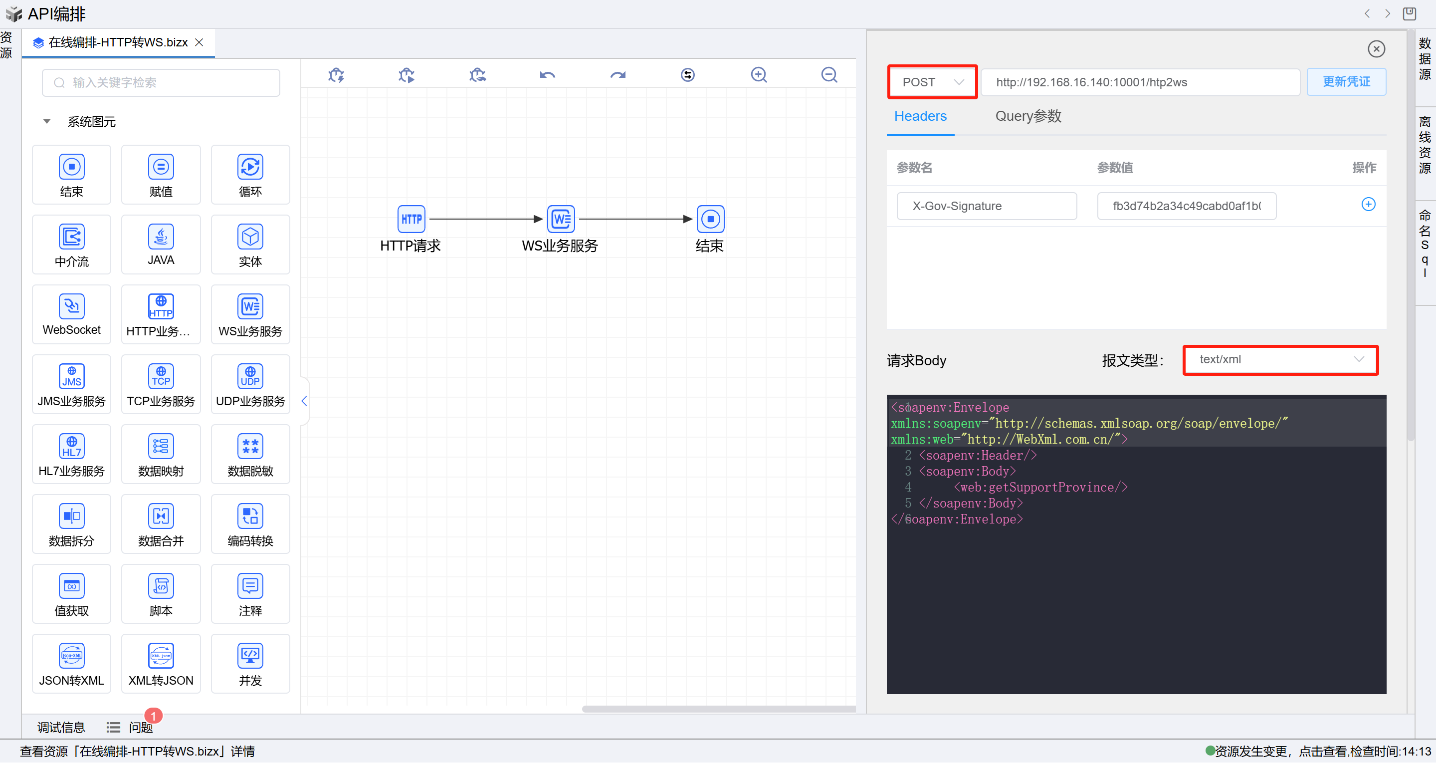 2. 打开测试界面,填写请求内容body体填写如下xml内容。