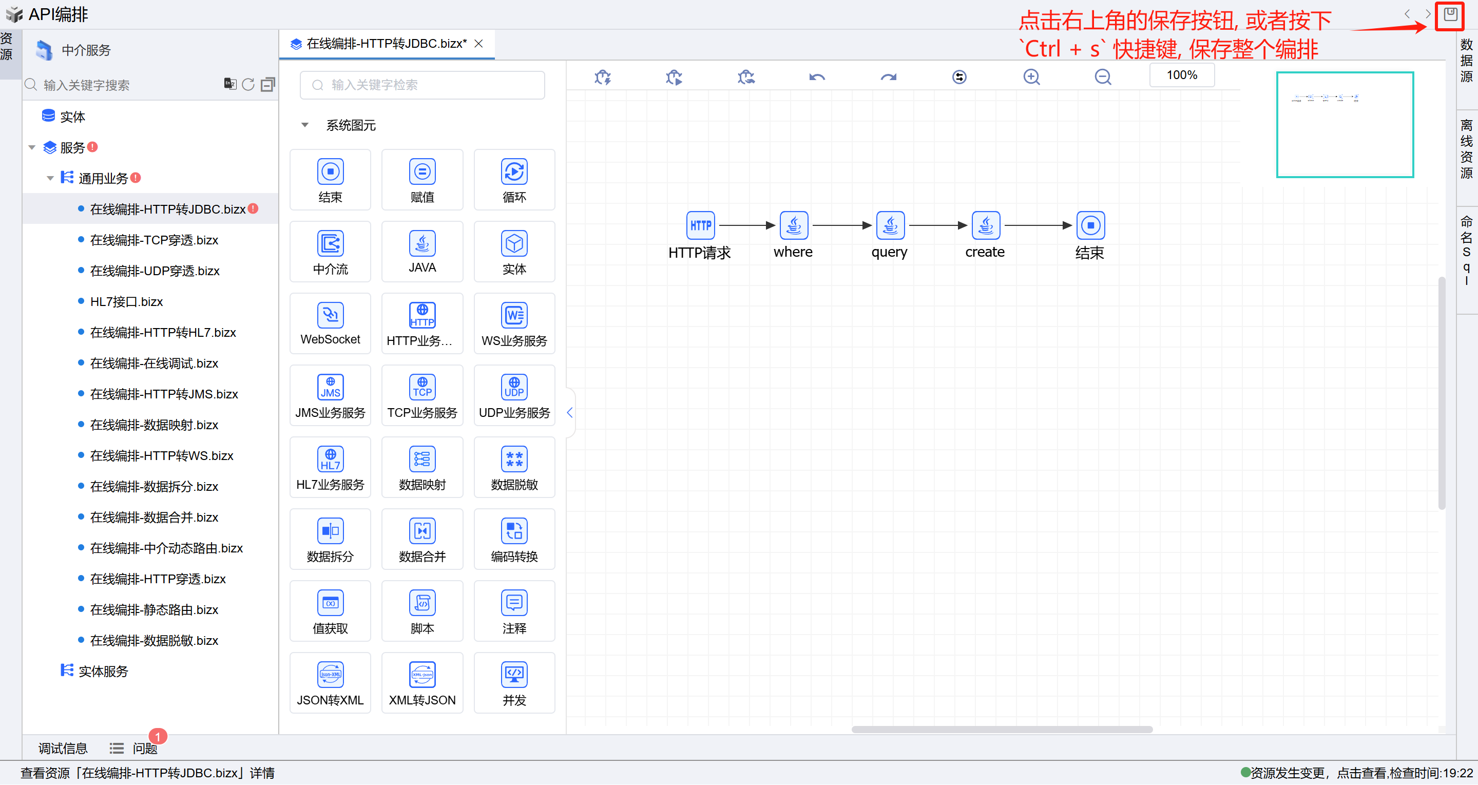 1.1. 或者点击中介服务,点击右侧的API编排按钮进入在线编排页面。如下图: