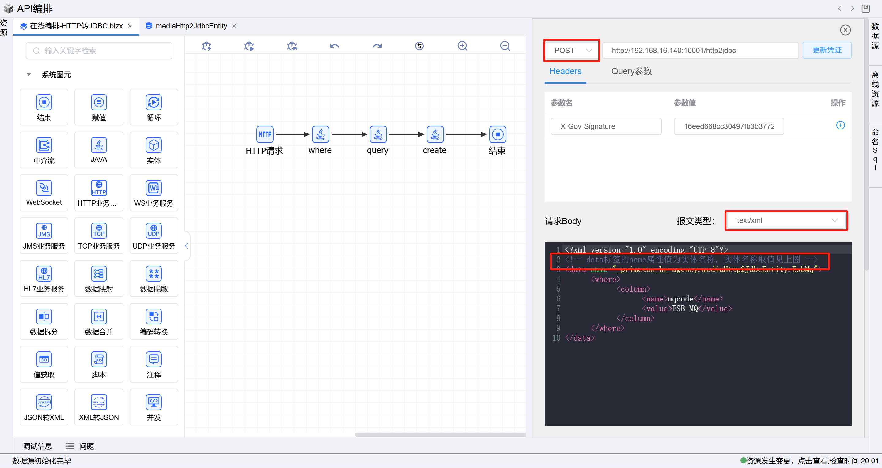 2. 打开测试界面,填写请求内容body体填写如下xml内容: