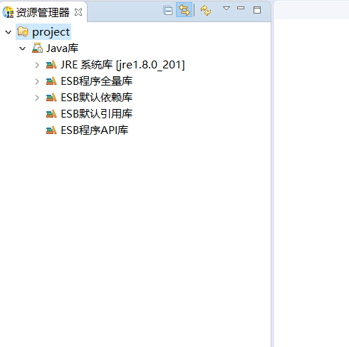 2. 点击"完成"按钮,完成创建ESB项目。创建ESB项目后,资源管理器如下所示: