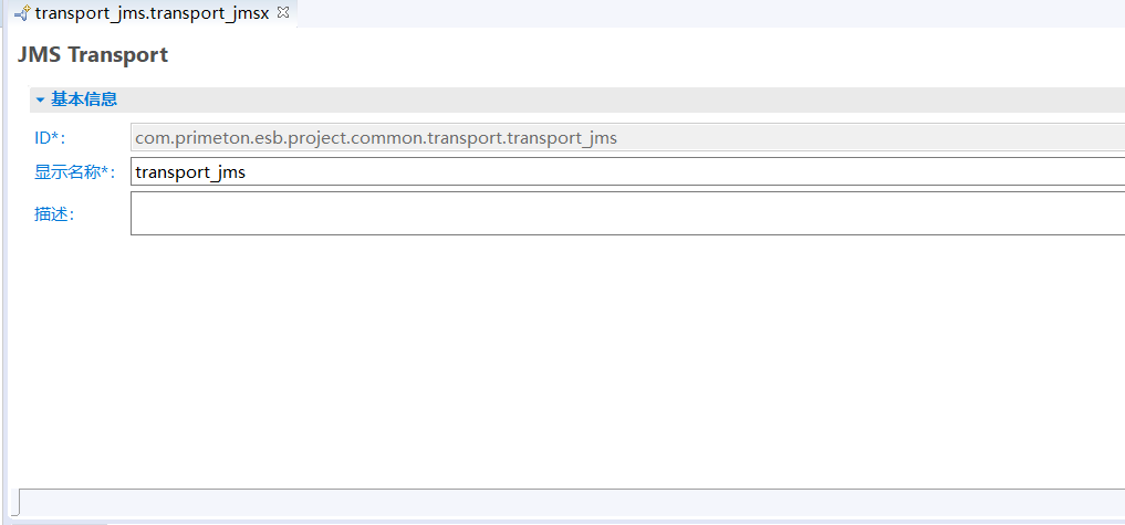 - 文件名:用于存储JMS Transport配置的文件名。需要保证在ESB工程中唯一。
