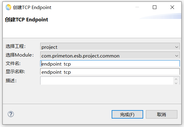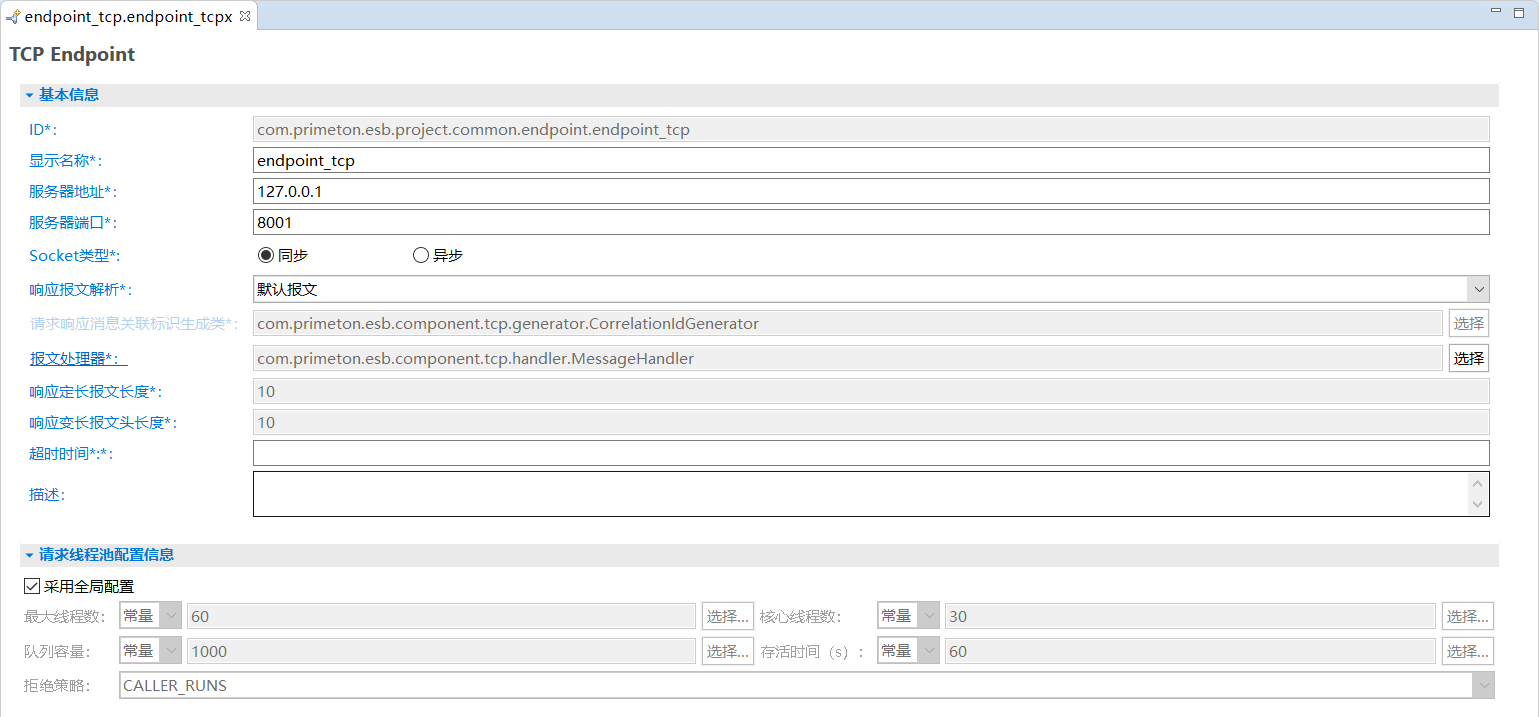 - 文件名:用于存储TCP Endpoint配置的文件名。需要保证在ESB工程中唯一。