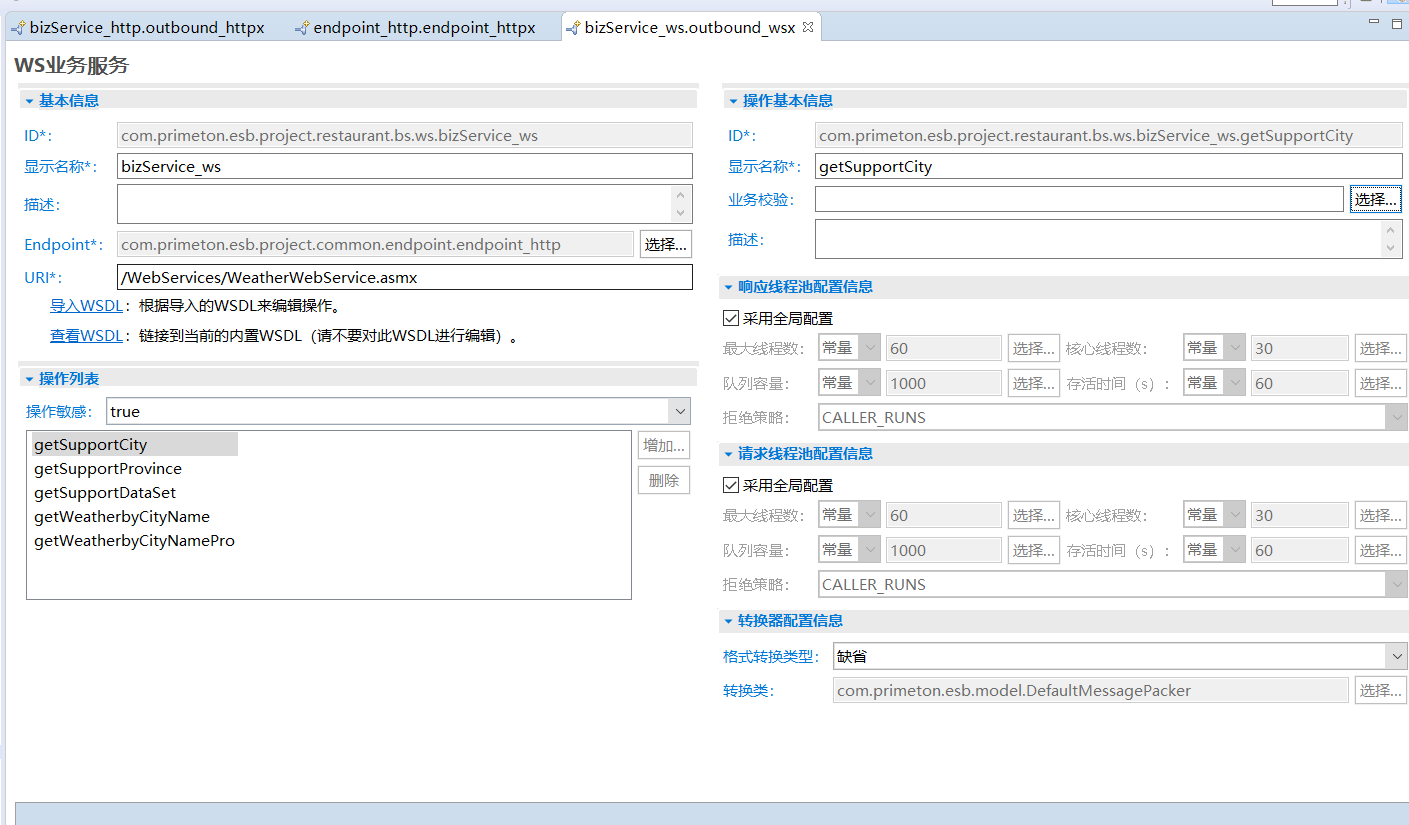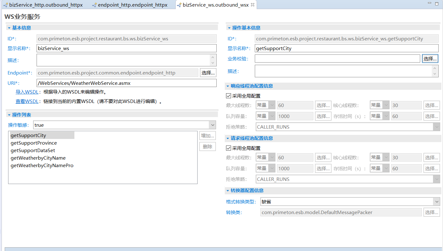 1. 在新生成的WS业务服务编辑器中输入基本信息,显示如下: