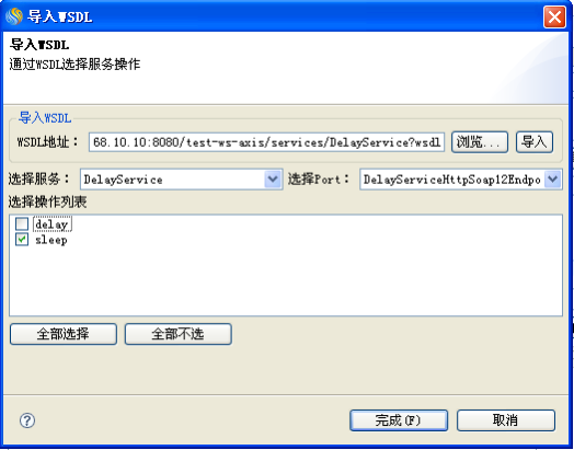 注意 操作列表中的方法至少选一个,否则提示:"至少选择一个WSDL操作"