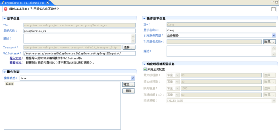 新生成的WS代理服务缺少其它必要信息,如访问URL、关联的业务服务(或代理服务),并在上图中显示为存在编译错误。