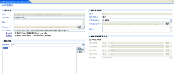 • Transport:WS代理服务关联的Transport,即WS代理服务所处理请求的来源。系统运行时,Transport完成请求的接入,然后交予WS代理服务处理请求。创建ESB项目时,会创建默认的Transport。