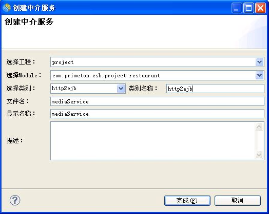 在"创建中介服务"向导中,输入相应的信息,点击"完成"按钮,如下图所示:
