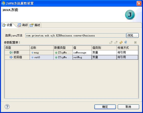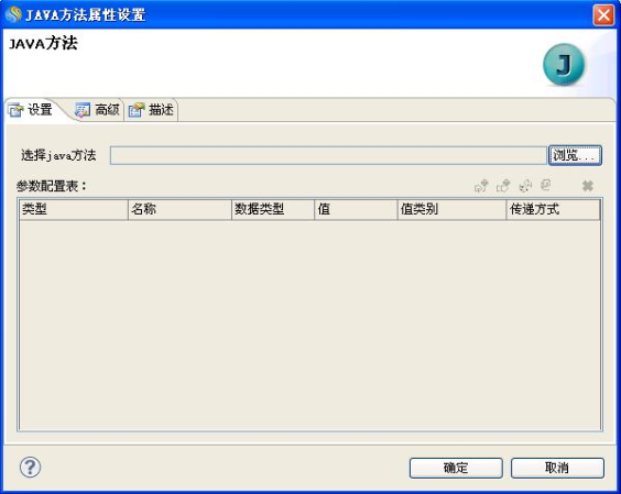 5.双击编辑区中的"Java方法"图元,弹出"JAVA方法属性设置"窗口,如下图所示: