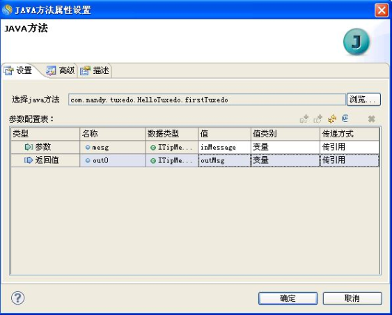 在"JAVA方法属性设置"中设置"参数配置表",如下图所示: