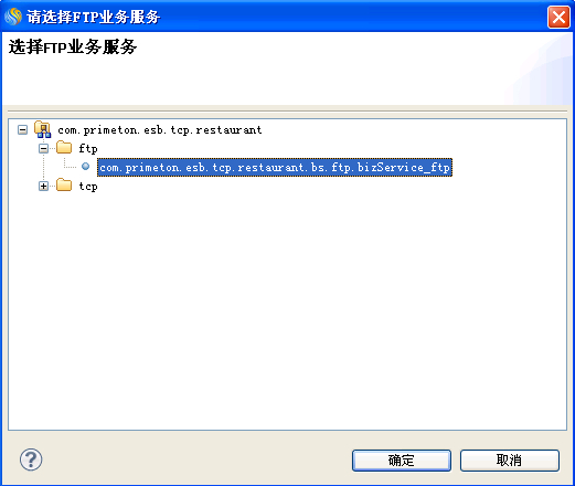 在"设置对话框"窗口中点击业务服务后面的"浏览"按钮,弹出"选择FTP业务服务"窗口,选择对应的FTP业务服务后,点击"确定",如下图所示: