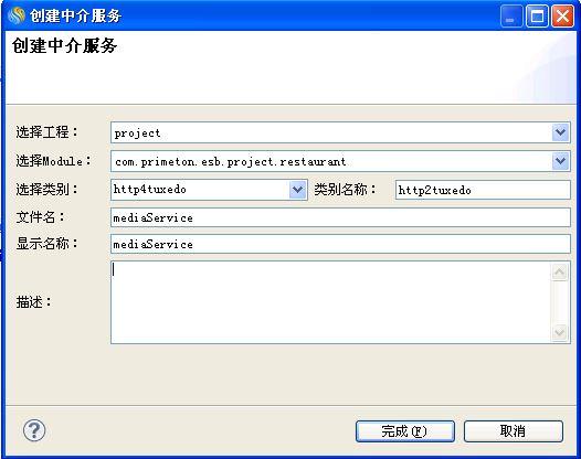 在"创建中介服务"向导中,输入相应的信息,点击"完成"按钮,如下图所示。