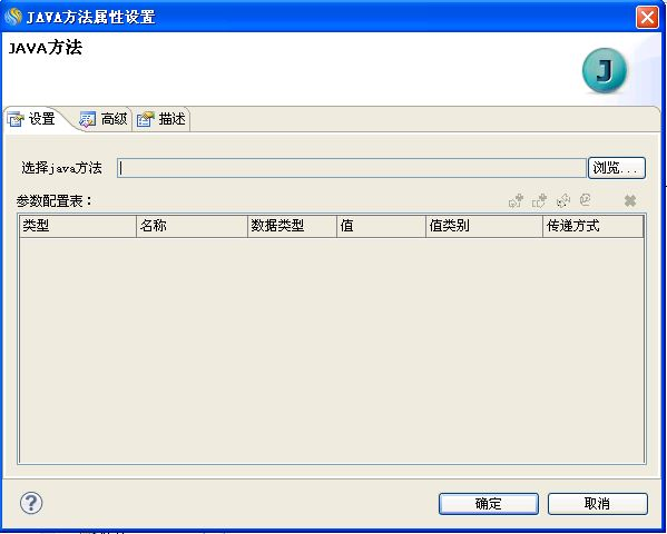 5.双击编辑区中的"Java方法"图元,弹出"JAVA方法属性设置"窗口,如下图所示。