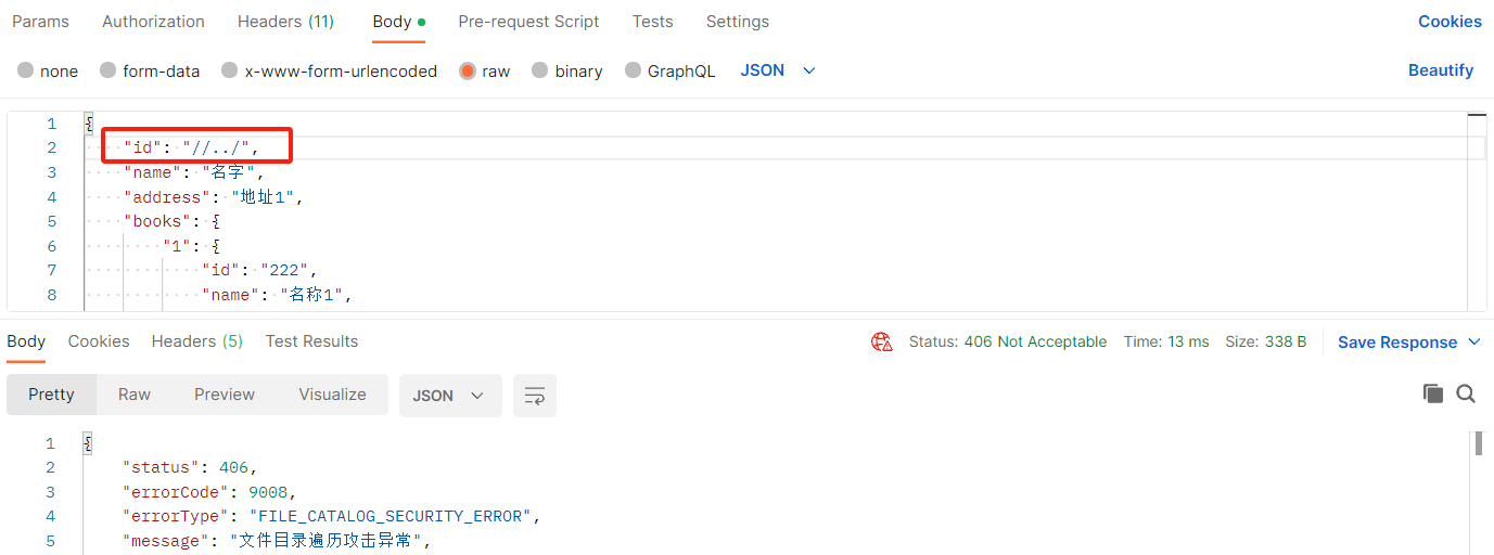 此处禁止的命令为"testcom",当请求参数或请求报文中包含相关命令,网关会拦截当前请求