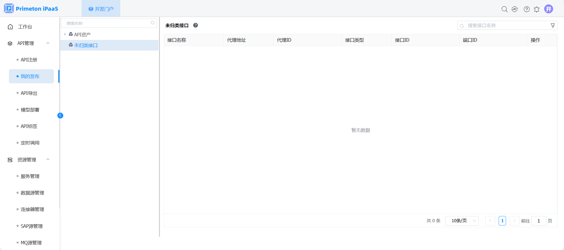 2. 当接口从“模型部署“部署后,如果该接口是新增的接口,则出现在未归类接口中,如下图所示。