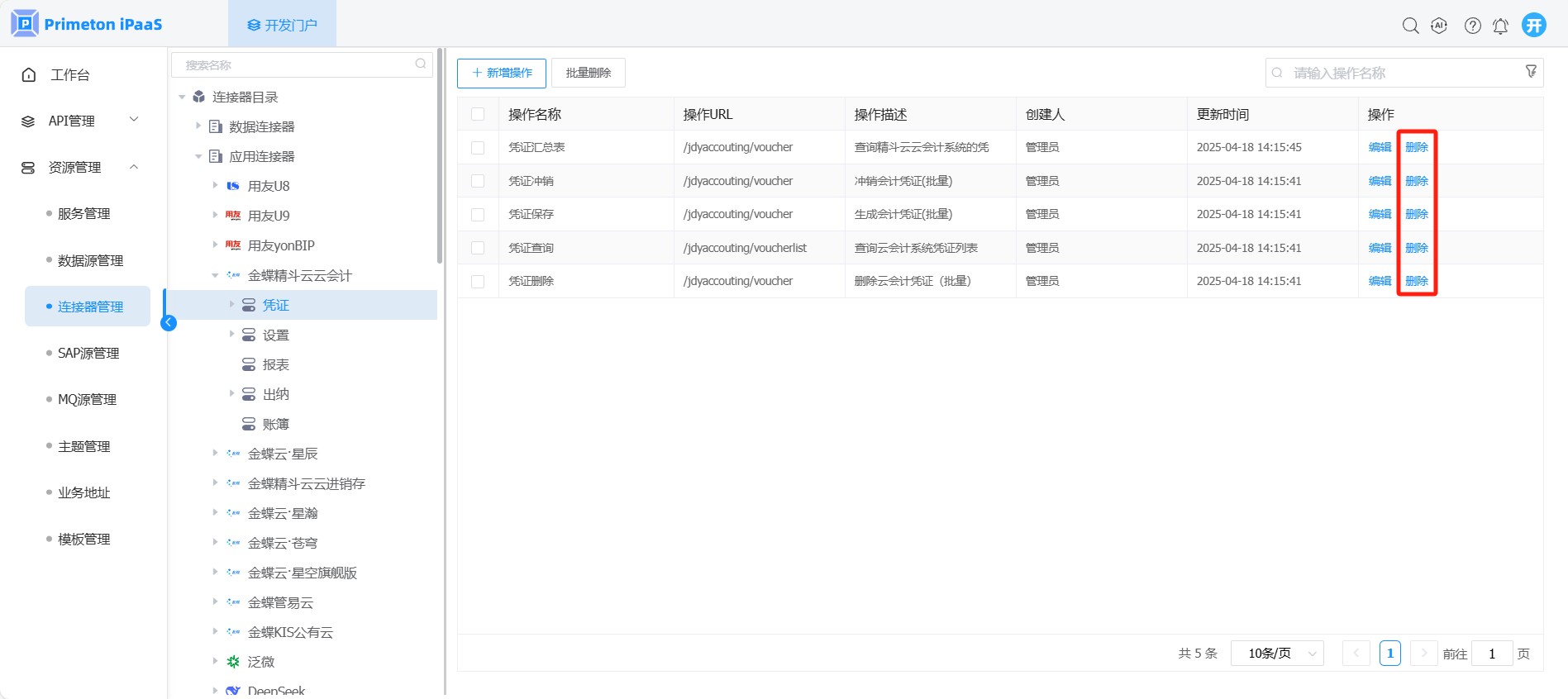 • 删除连接器操作