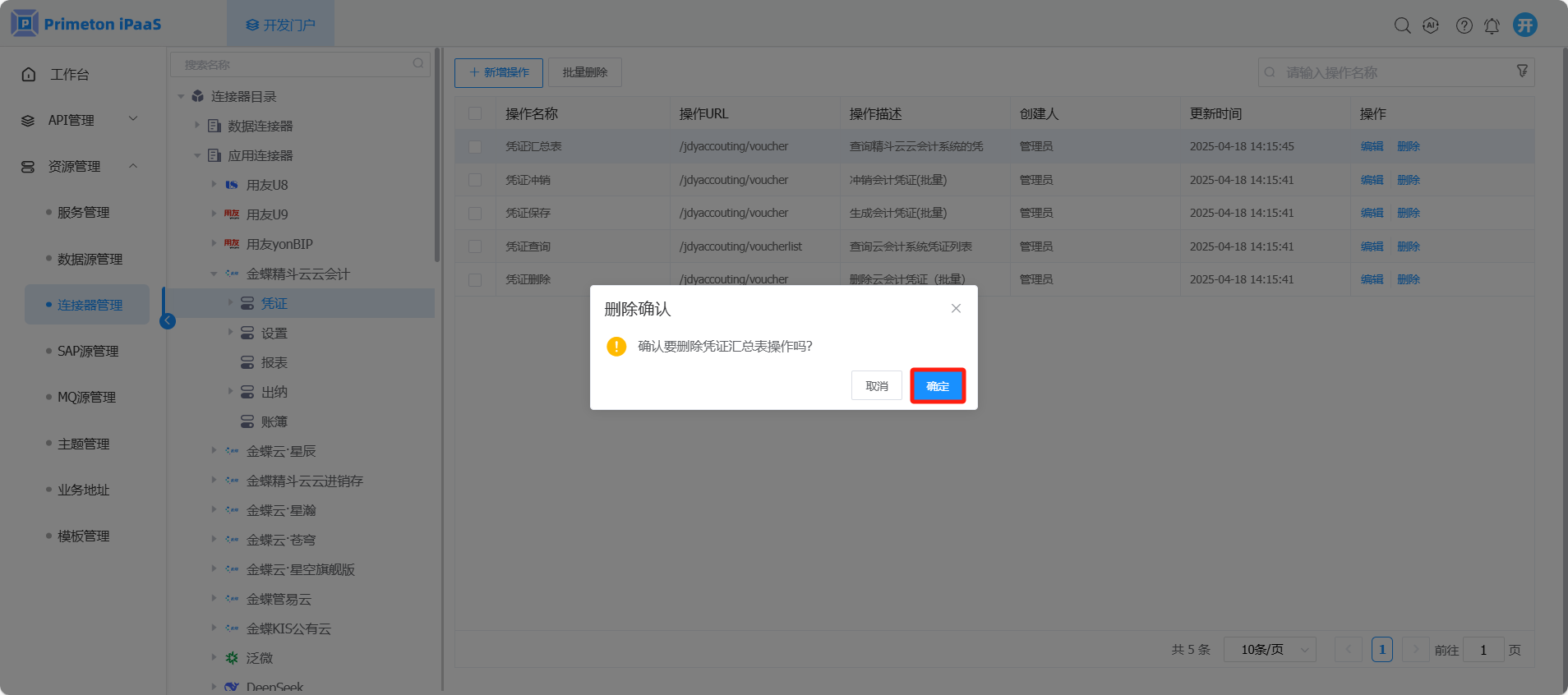 # 删除连接器操作