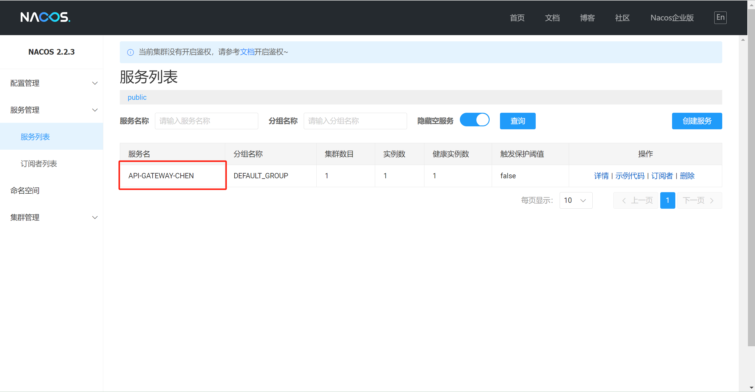服务和APIGateway Server需注册到一个nacos上,启动nacos服务和服务。