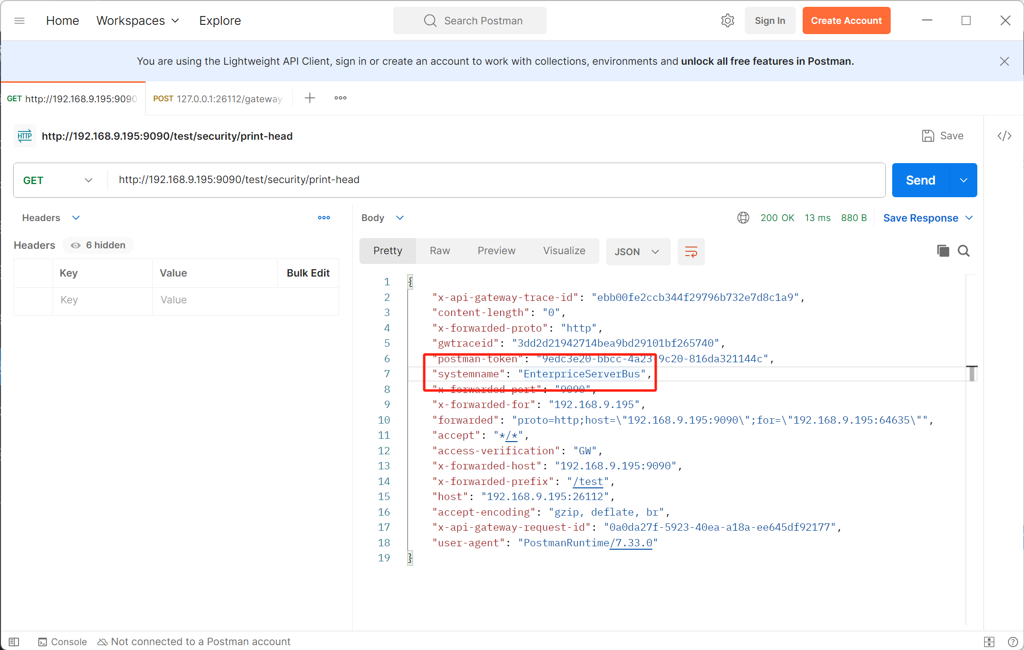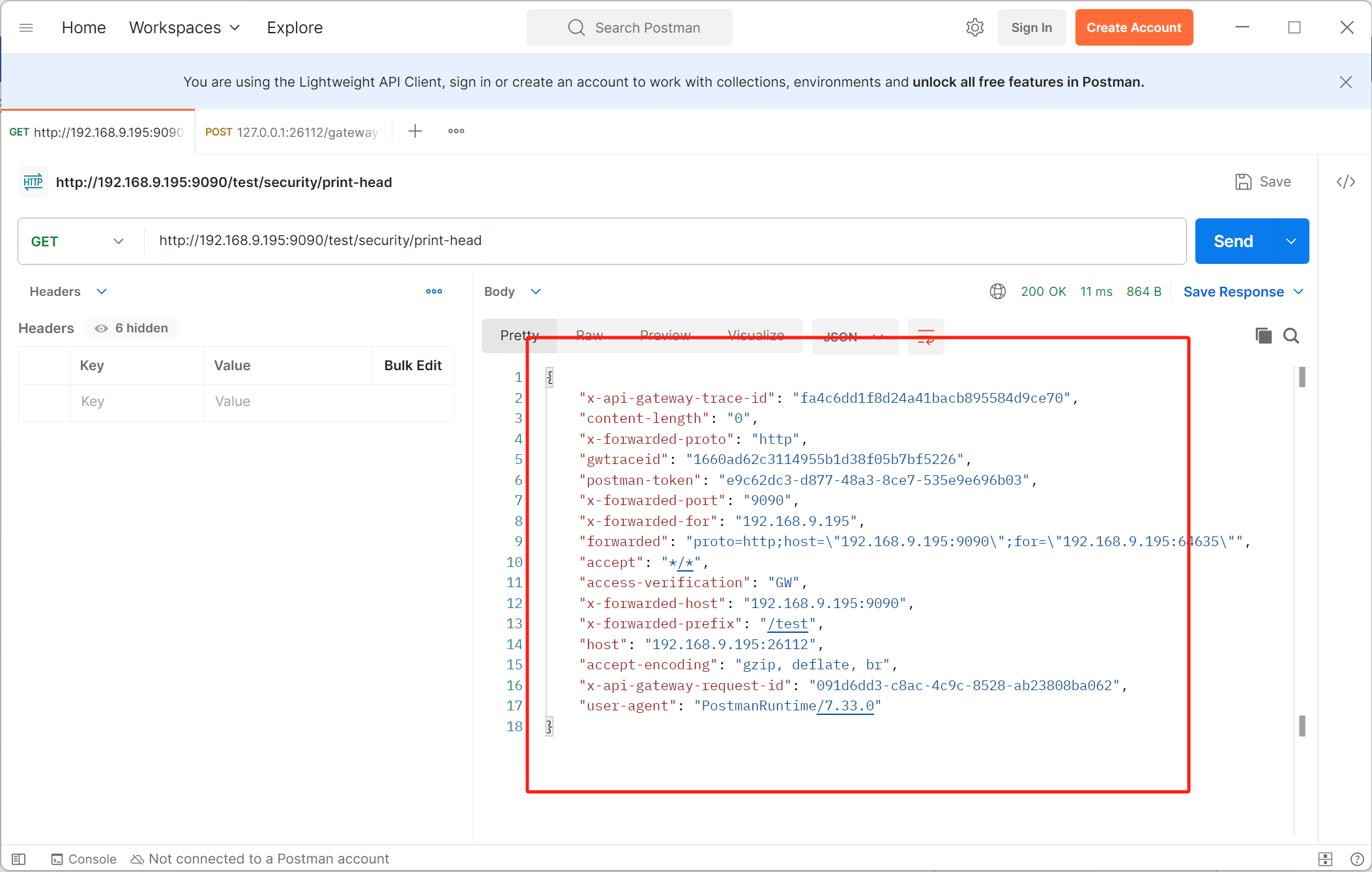 展示效果:调用 /security/print-head接口,打印所有请求头信息