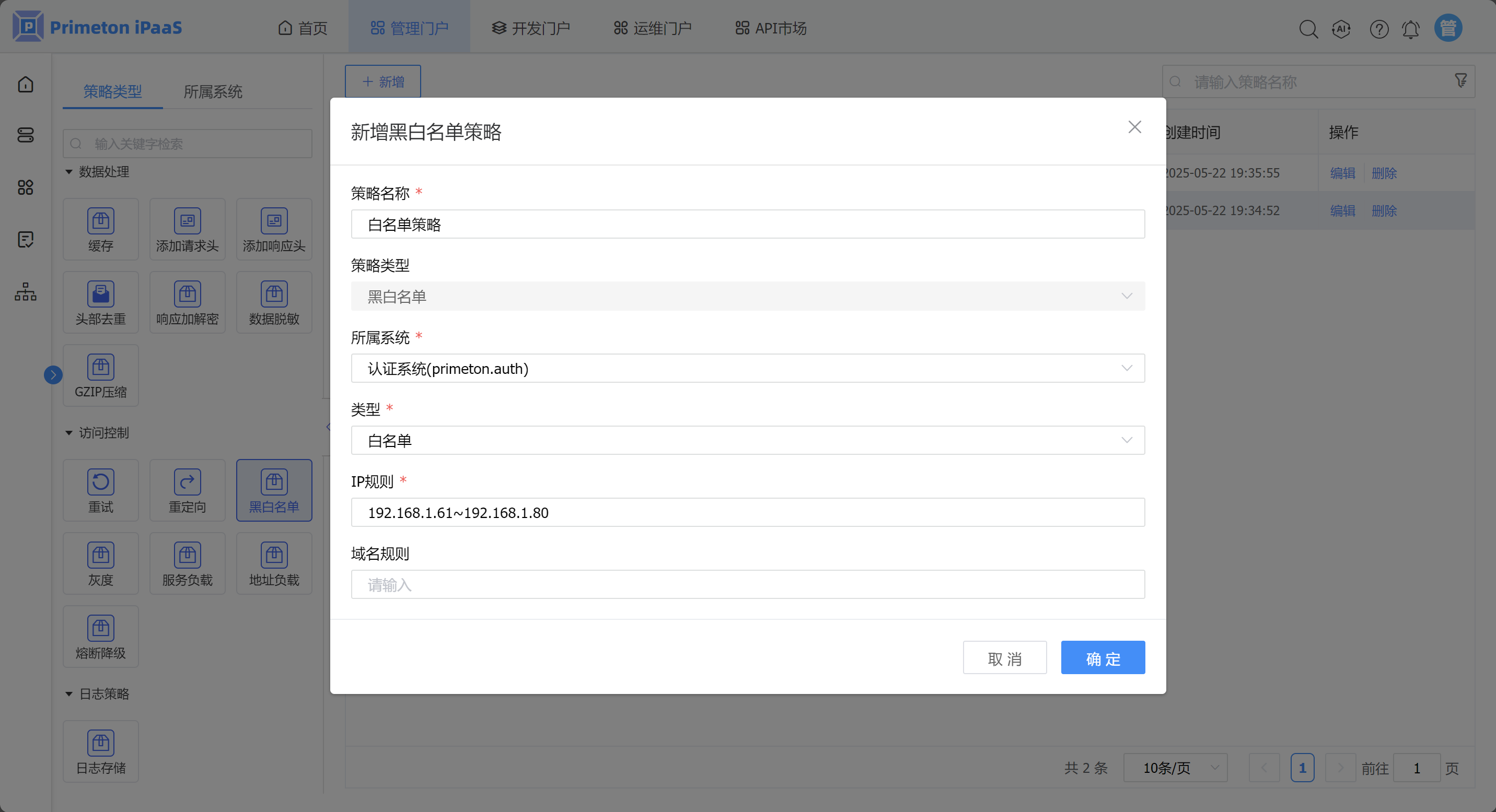 黑白名单策略是访问控制的基础机制,通过定义明确的规则来控制消费方请求的准入权限。