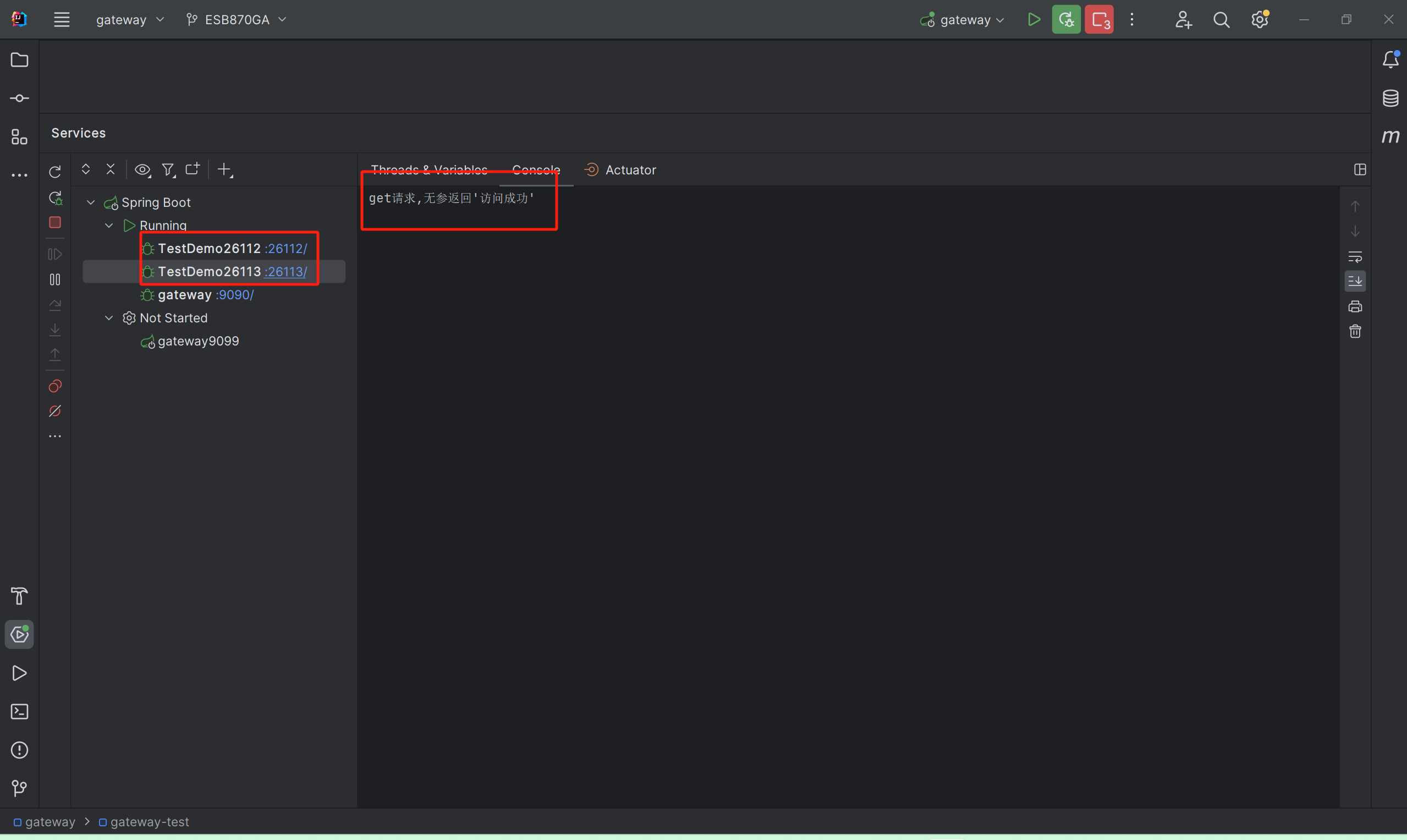 把负载策略添加到API接口:对接口访问两次,查看两个服务实例的控制台打印