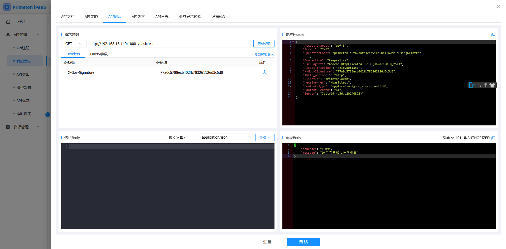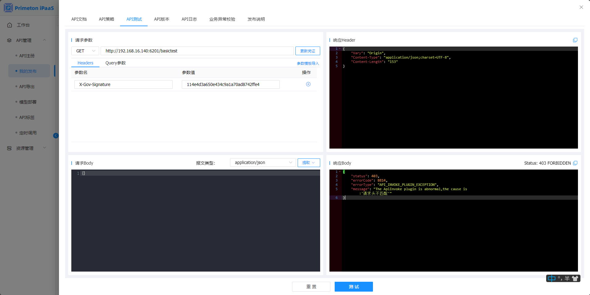 2. 添加策略到API接口,在"API测试"中,查看调用结果:
