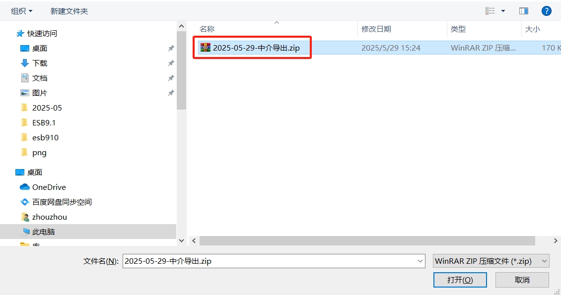 选择从测试环境导出的中介压缩包,然后上传压缩包,导入中介数据。