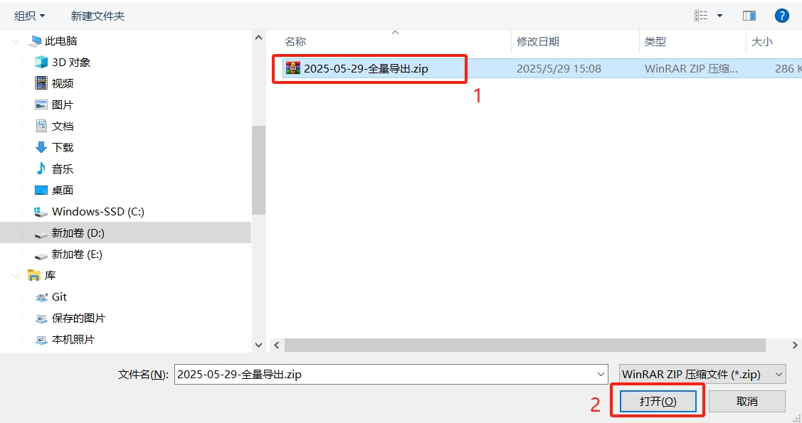 选择从测试环境导出的增量压缩包,然后上传压缩包,导入增量数据。